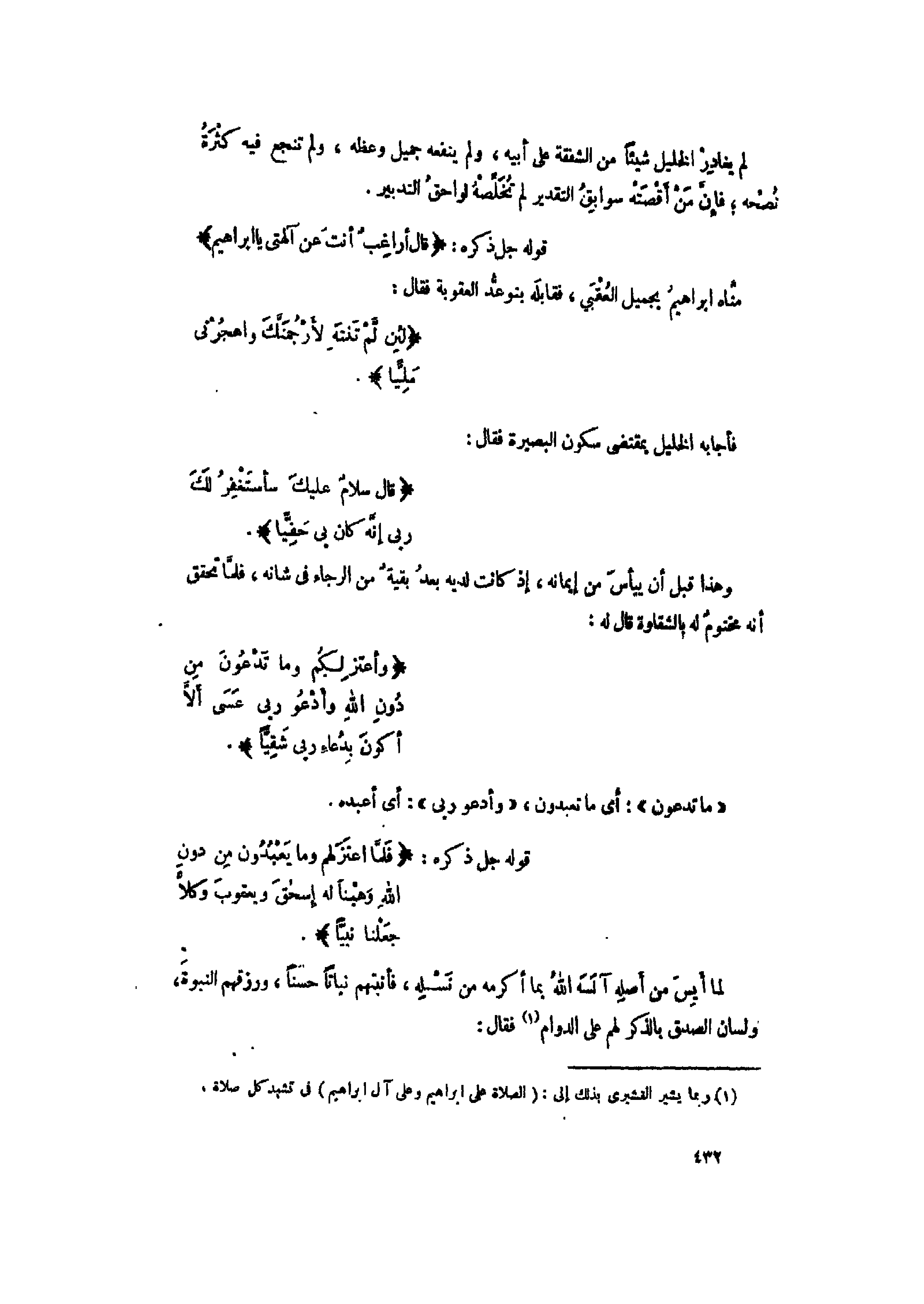 (1) ربما يشير القشيري بذلك إلى: (الصلاة على ابراهيم وعلى آل ابراهيم) فى تشيد كل صلاة،
