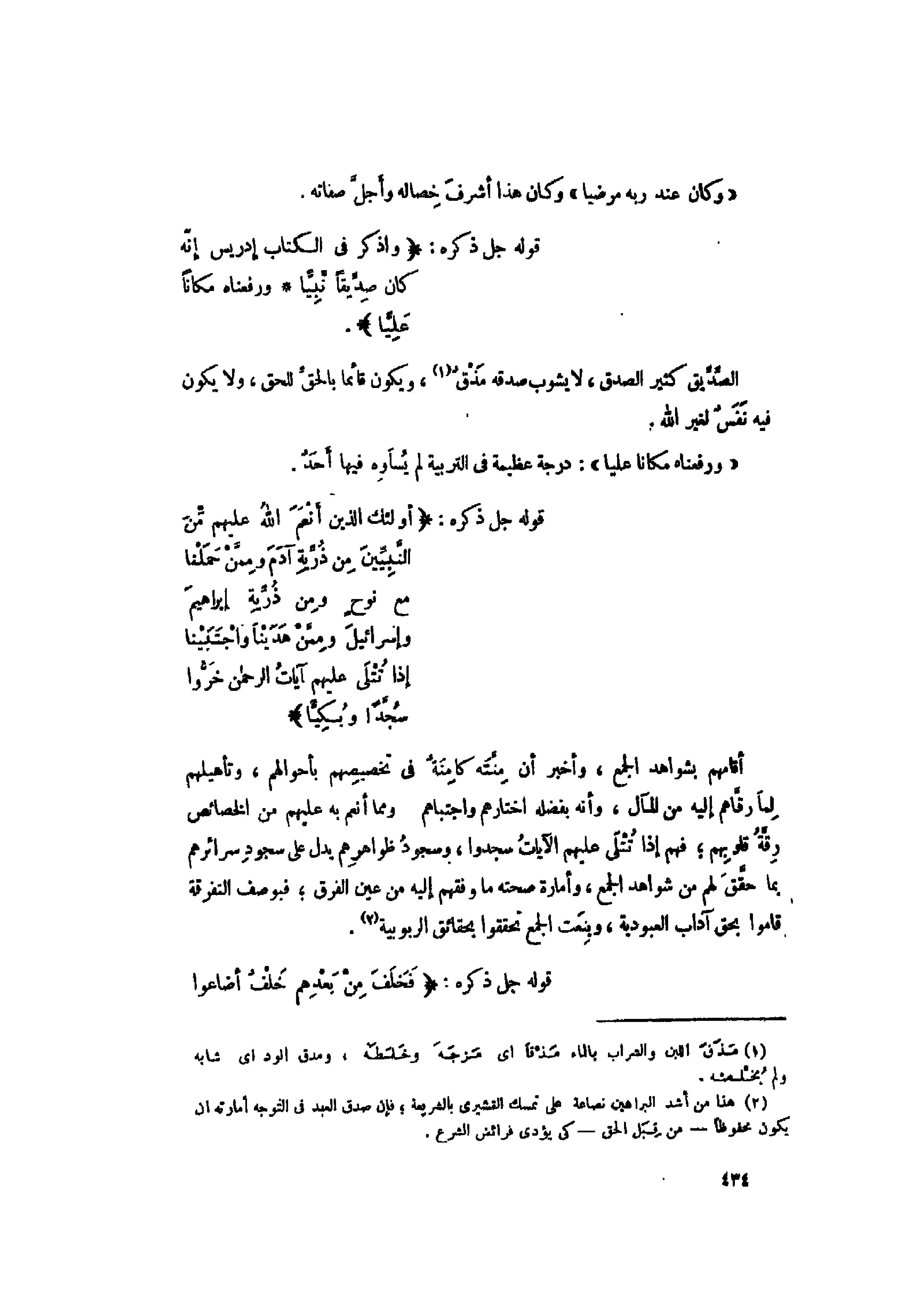 وَاذْكُرْ فِي الْكِتابِ إِدْرِيسَ إِنَّهُ كانَ صِدِّيقاً نَبِيًّا (56) وَرَفَعْناهُ مَكاناً عَلِيًّا (57)