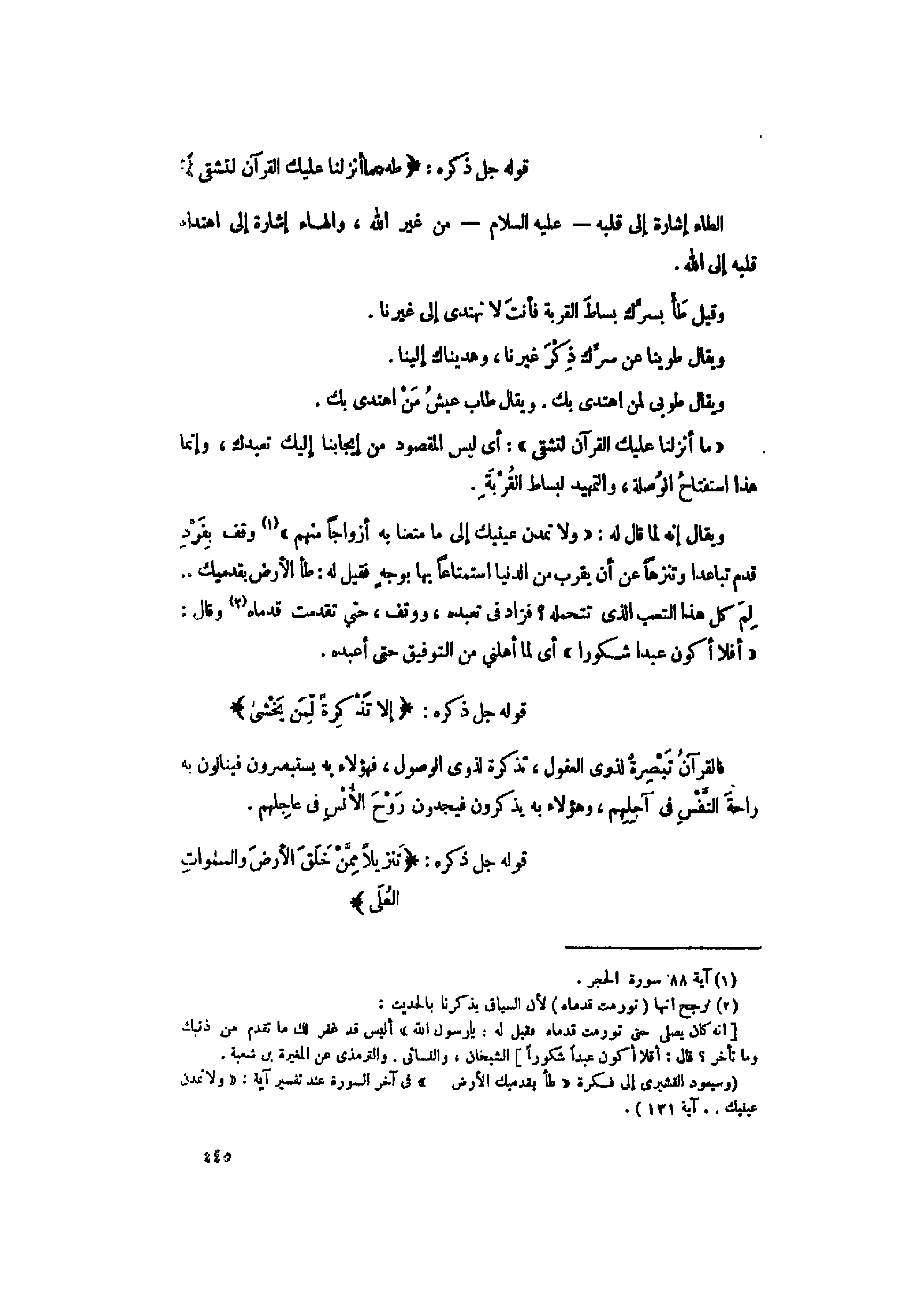 (وسيعود القشيري إلى فكرة «طأ بقدميك الأرض» فى آخر السورة عند تفسير آية: «وَلا تَمُدَّنَّ عَيْنَيْكَ ... آية 131) .