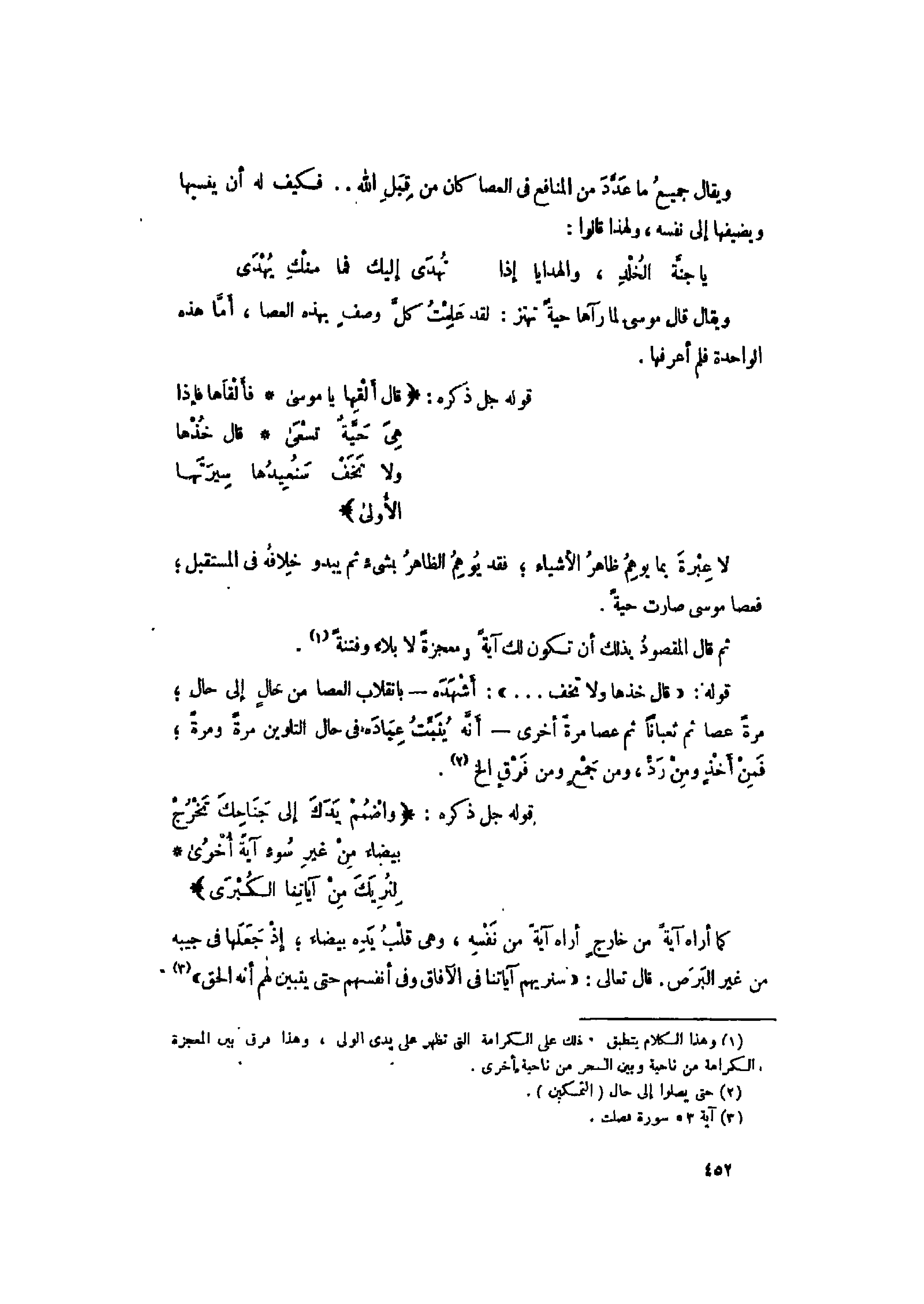 قوله: «قالَ خُذْها وَلا تَخَفْ ... » : أشهده- بانقلاب العصا من حال إلى حال مرة عصا ثم ثعبانا ثم عصا مرة أخرى- أنّه يثبّت عباده فى حال التلوين مرة ومرة فمن أخذ ومن ردّ، ومن جمع ومن فرق إلخ «2» .