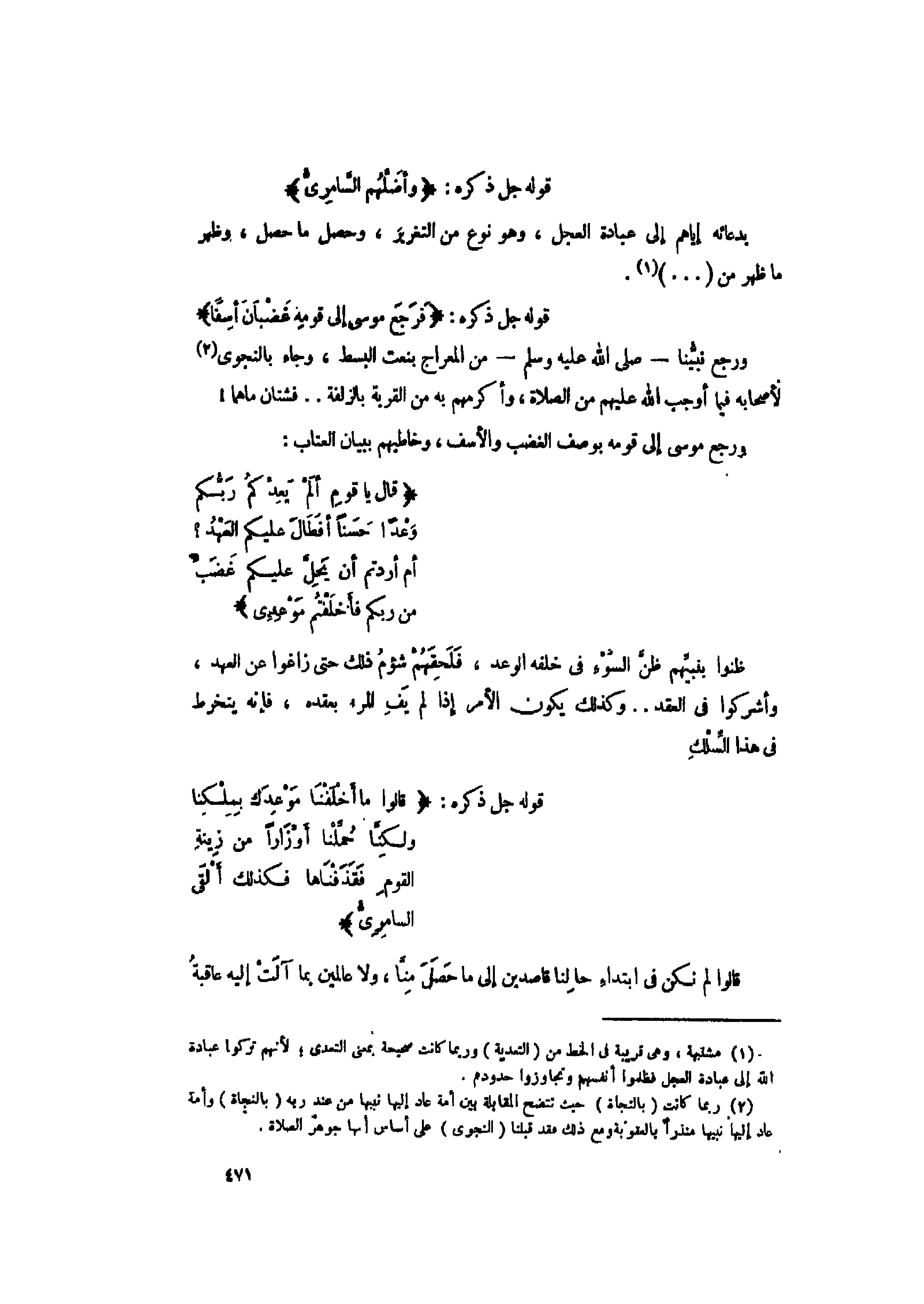 (2) ربما كانت (بالنجاة) حيث تتضح المقابلة بين أمة عاد إليها نبيها من عند ربه (بالنجاة) وأمة عاد إليها نبيها منذرا بالعقوبة ومع ذلك فقد قبلنا (النجوى) على أساس أنها جوهر الصلاة. [.....]