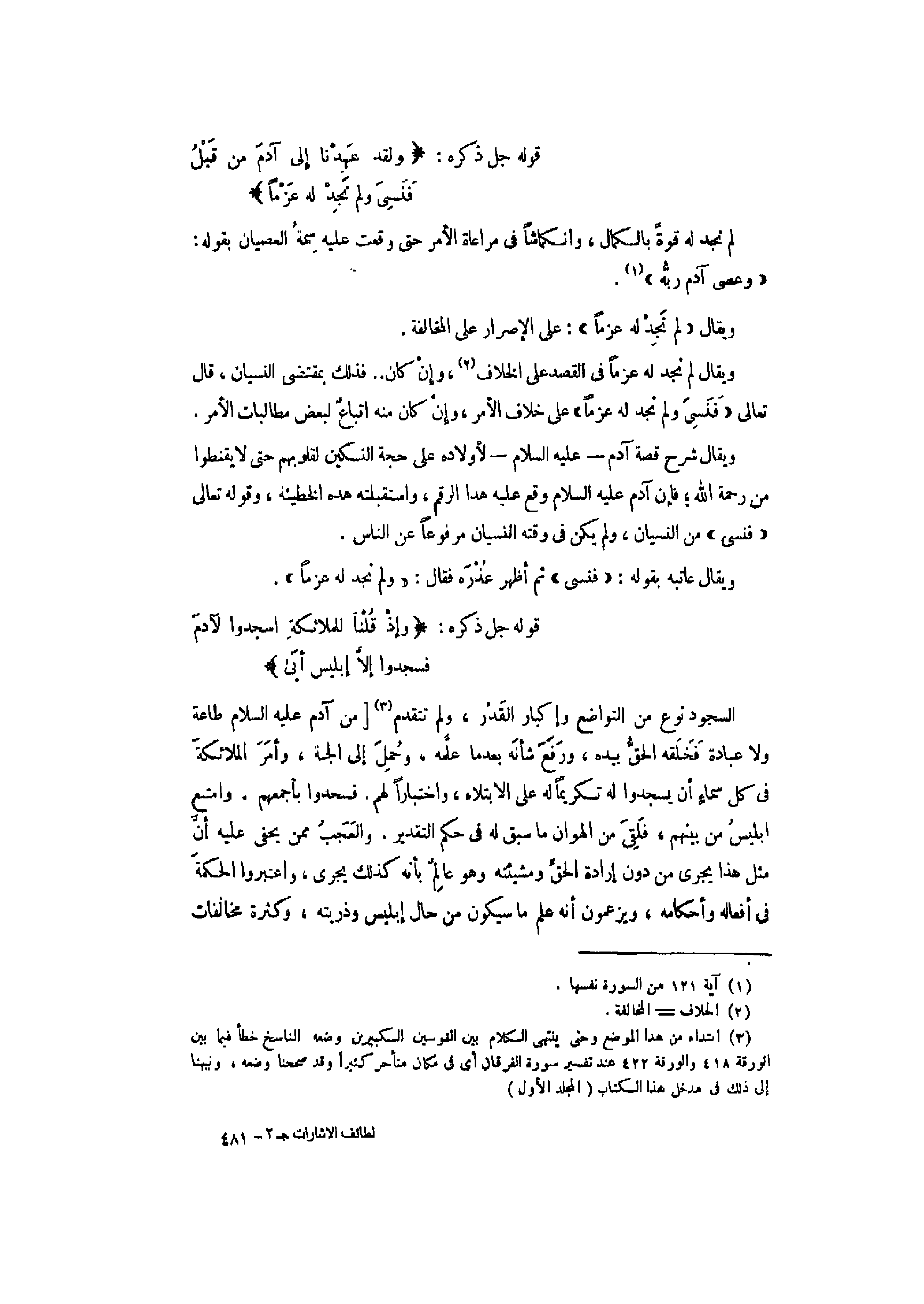 (3) ابتداء من هذا الموضع وحتى ينتهى الكلام بين القوسين الكبيرين وضعه الناسخ خطأ فيما بين الورقة 418 والورقة 422 عند تفسير سورة الفرقان أي فى مكان متأخر كثيرا وقد سمعنا وضعه، ونبهنا إلى ذلك فى مدخل هذا الكتاب (المجلد الأول) .