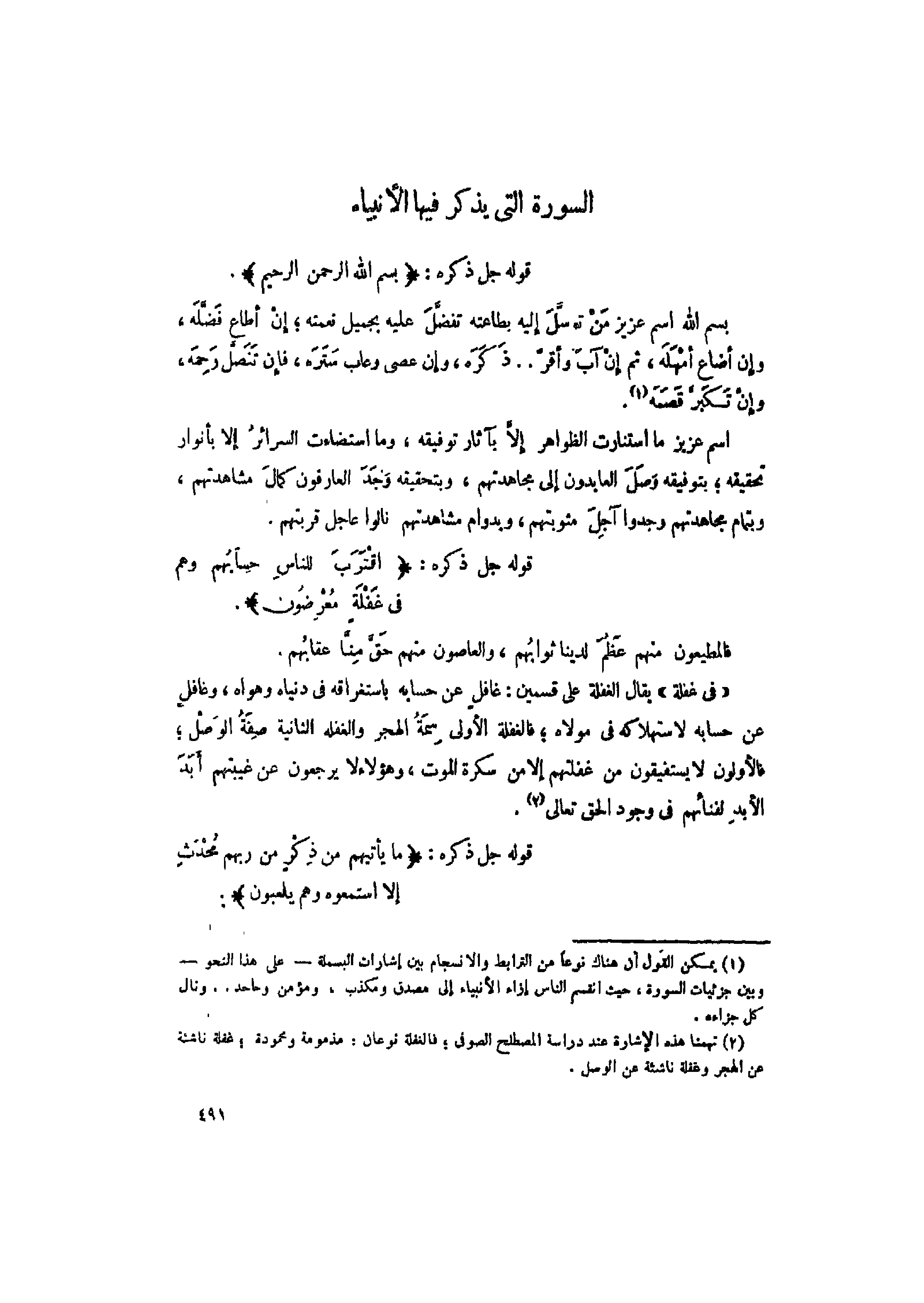 (2) تهمنا هذه الإشارة عند دراسة المصطلح الصوفي فالغفلة نوعان: مذمومة ومحمودة غفلة ناشئة عن الهجر وغفلة ناشئة عن الوصل. [.....]