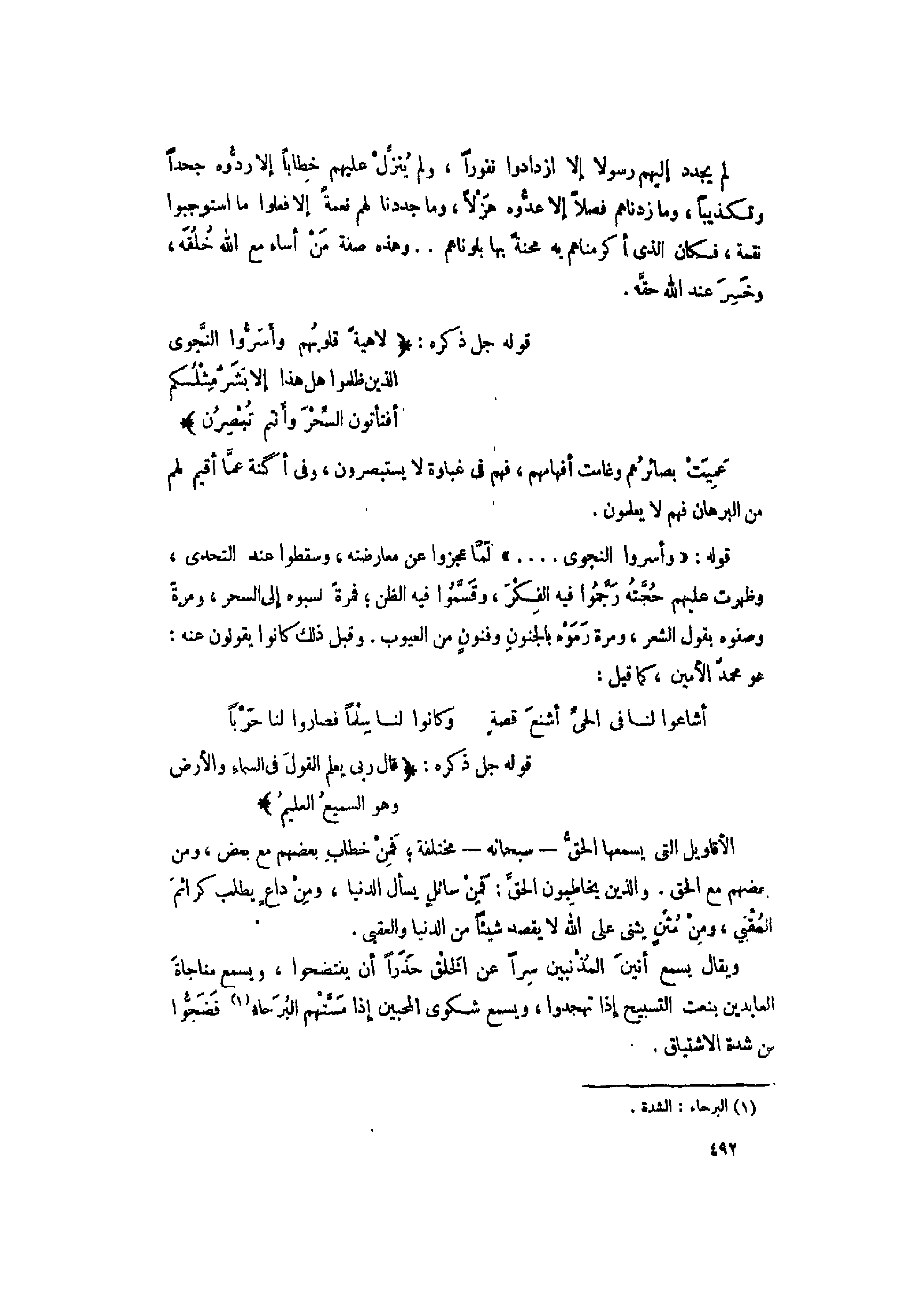 قوله: «وَأَسَرُّوا النَّجْوَى ... » لمّا عجزوا عن معارضته، وسقطوا عند التحدي، وظهرت عليهم حجّته رجّموا فيه الفكر، وقسّموا فيه الظن فمرة نسبوه إلى السحر، ومرة وصفوه بقول الشعر، ومرة رموه بالجنون وفنون من العيوب. وقبل ذلك كانوا يقولون عنه: