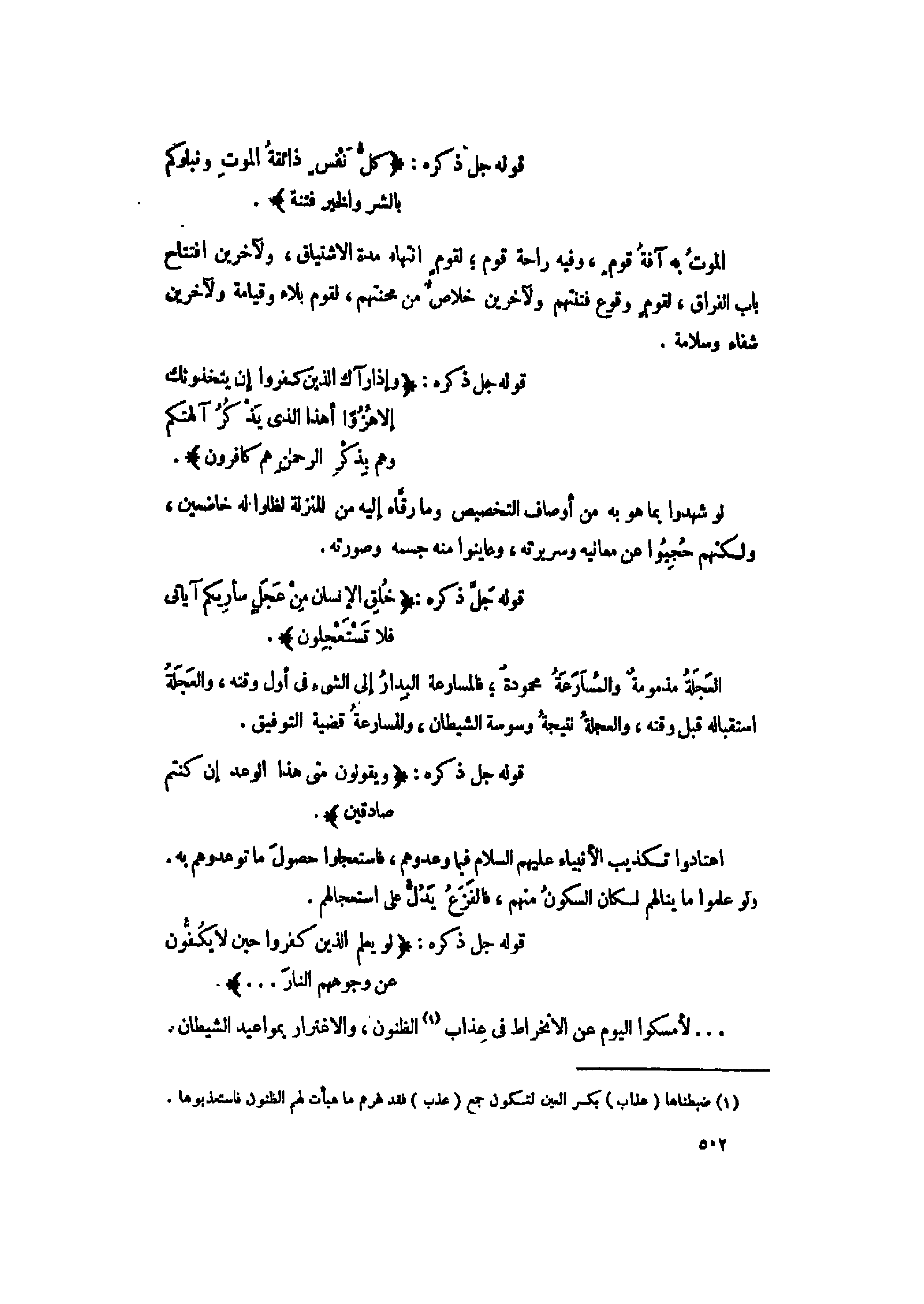 (1) ضبطناها (عذاب) بكسر العين لتكون جمع (عذب) فقد غرهم ما هيأت لهم الظنون فاستعذبوها.