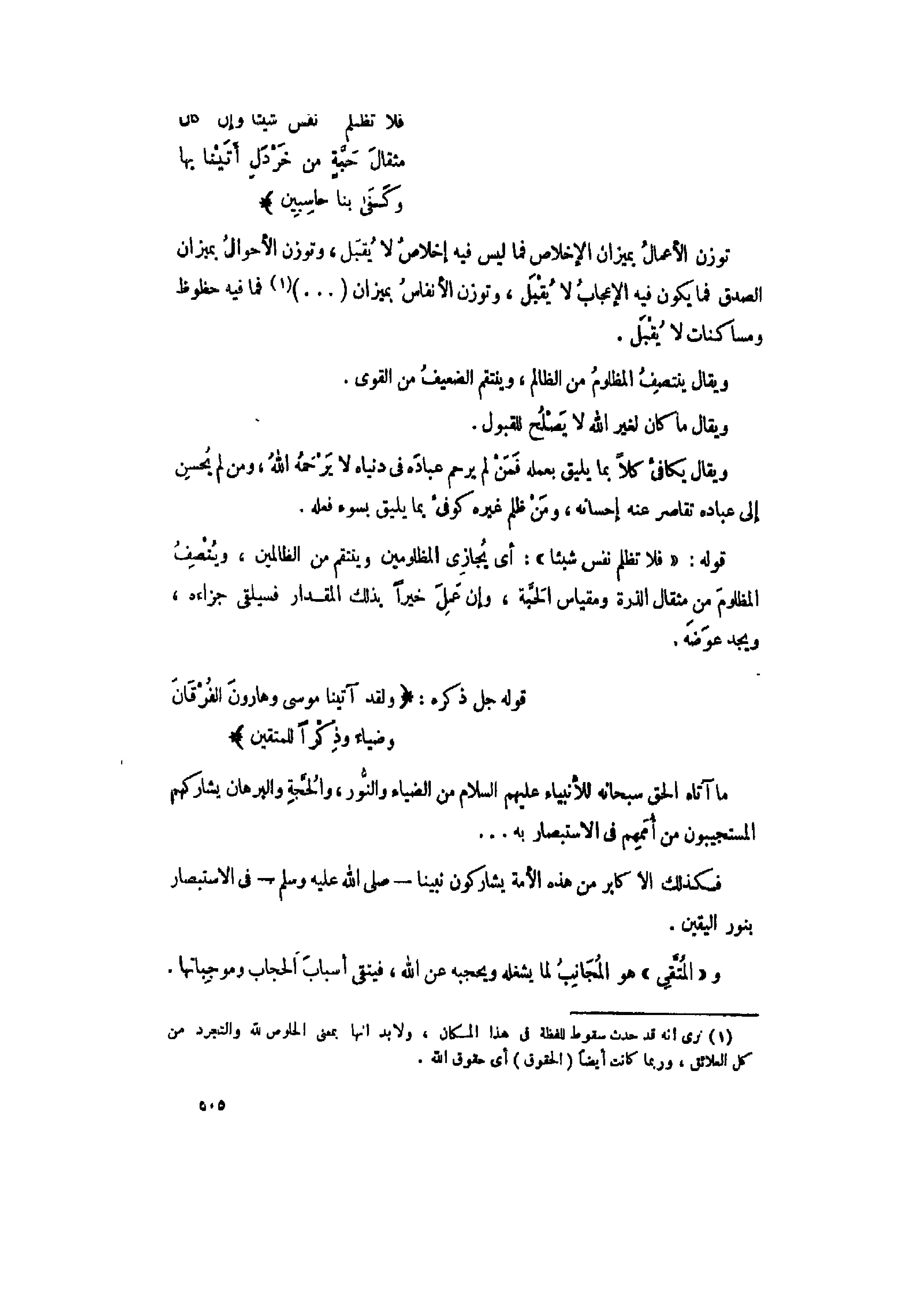 (1) نرى انه قد حدث سقوط للفظة فى هذا المكان، ولا بد انها بمعنى الخلوص لله والتجرد من كل العلائق، وربما كانت أيضا (الحقوق) أي حقوق الله.