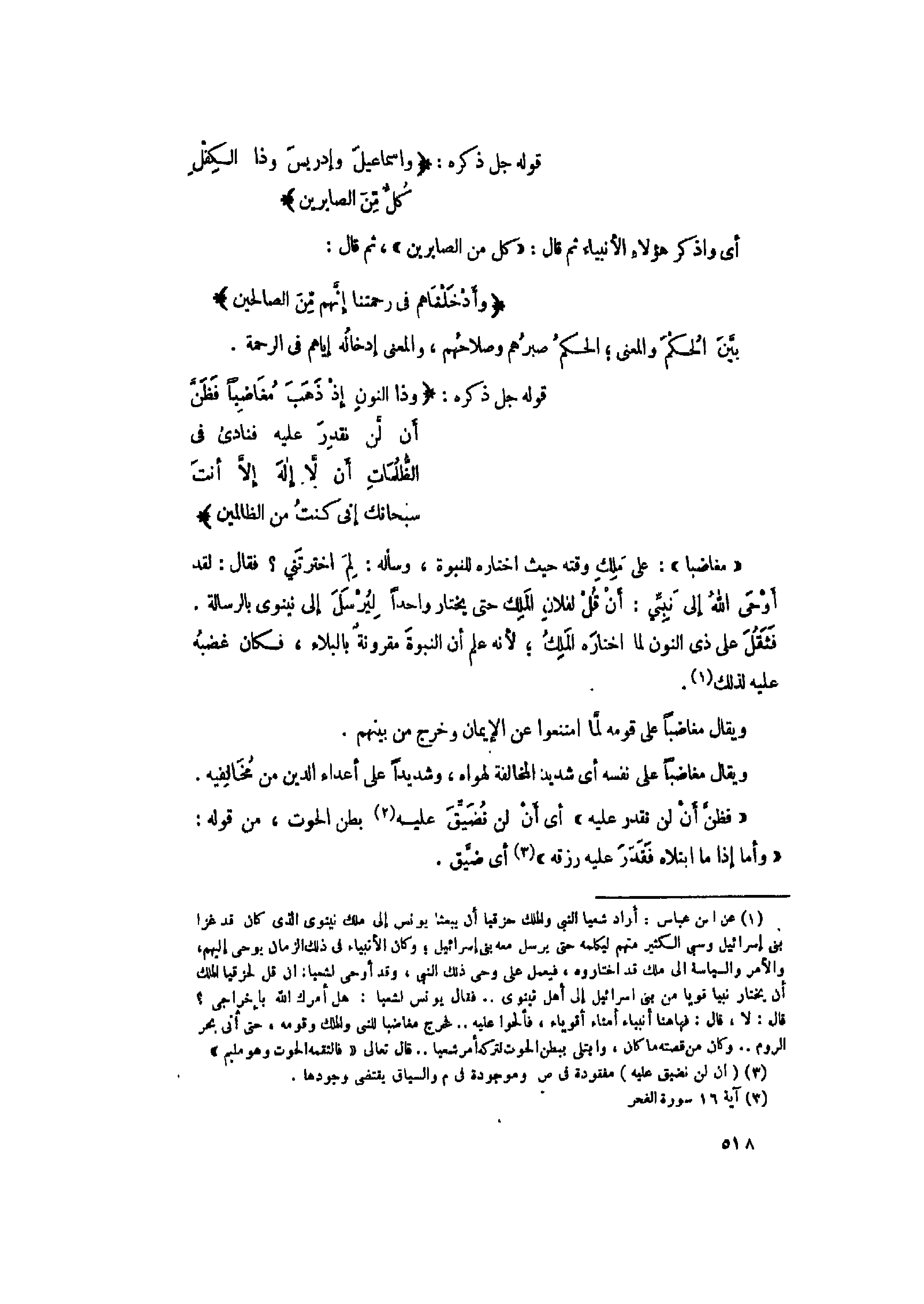 وَذَا النُّونِ إِذْ ذَهَبَ مُغاضِباً فَظَنَّ أَنْ لَنْ نَقْدِرَ عَلَيْهِ فَنادى فِي الظُّلُماتِ أَنْ لا إِلهَ إِلاَّ أَنْتَ سُبْحانَكَ إِنِّي كُنْتُ مِنَ الظَّالِمِينَ (87)