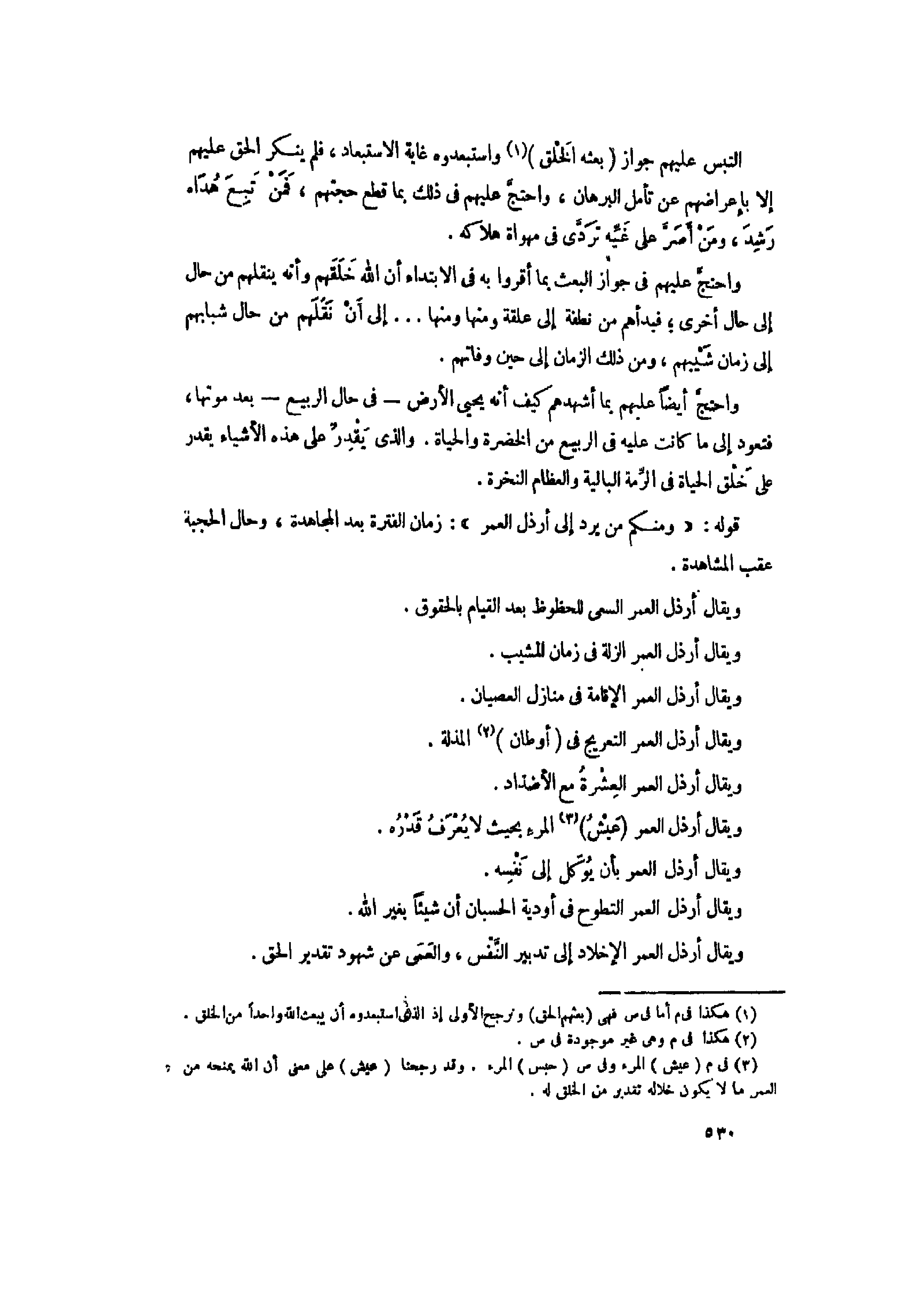 (3) فى م (عيش) المرء وفى ص (حبس) المرء. وقد رجحنا (عيش) على معنى أن الله يمنحه من العمر ما لا يكون خلاله تقدير من الخلق له.