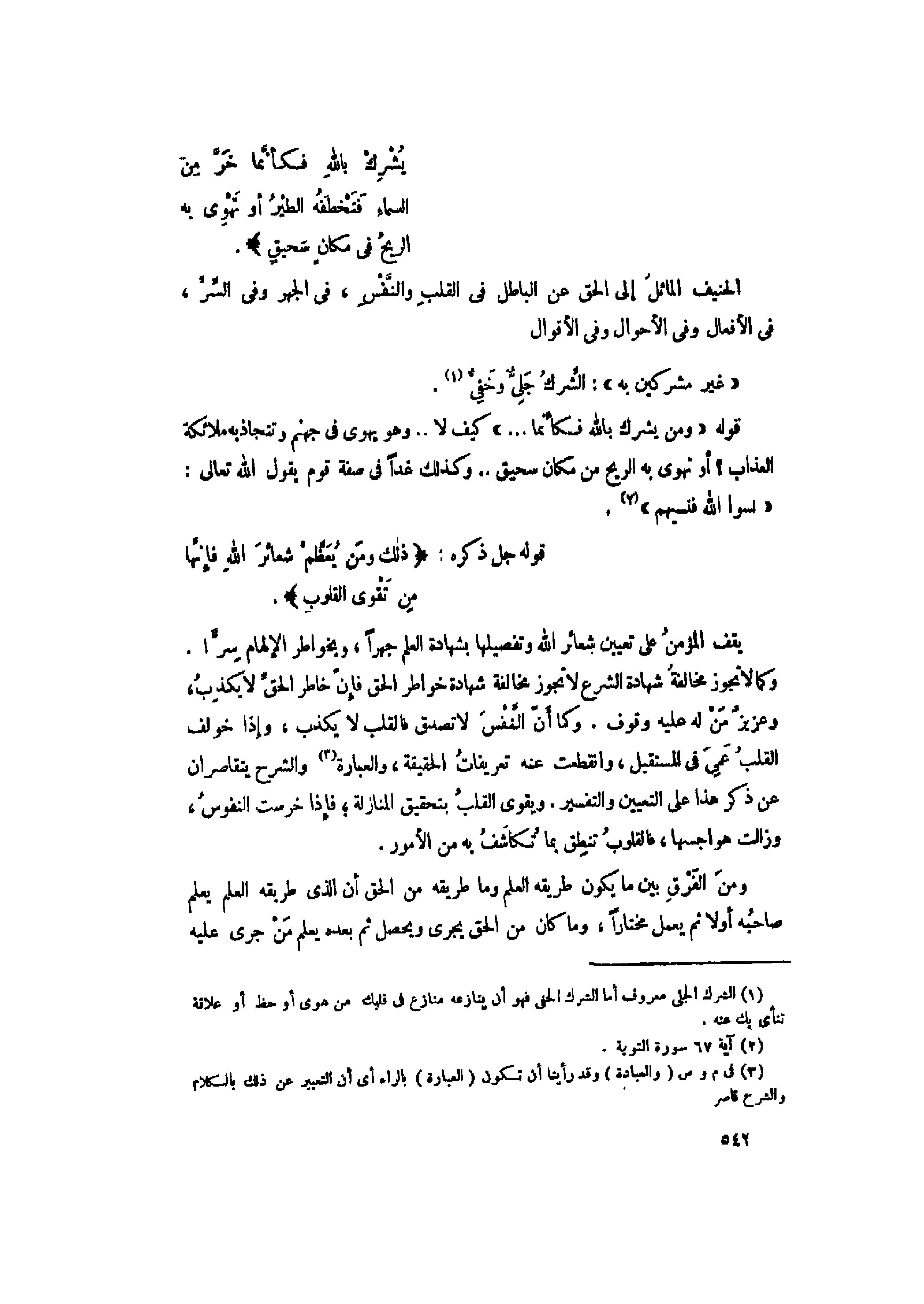 (1) الشرك الجلى معروف أما الشرك الخفي فهو أن ينازعه منازع فى قلبك من هوى أو حظ أو علاقة تنأى بك عنه.