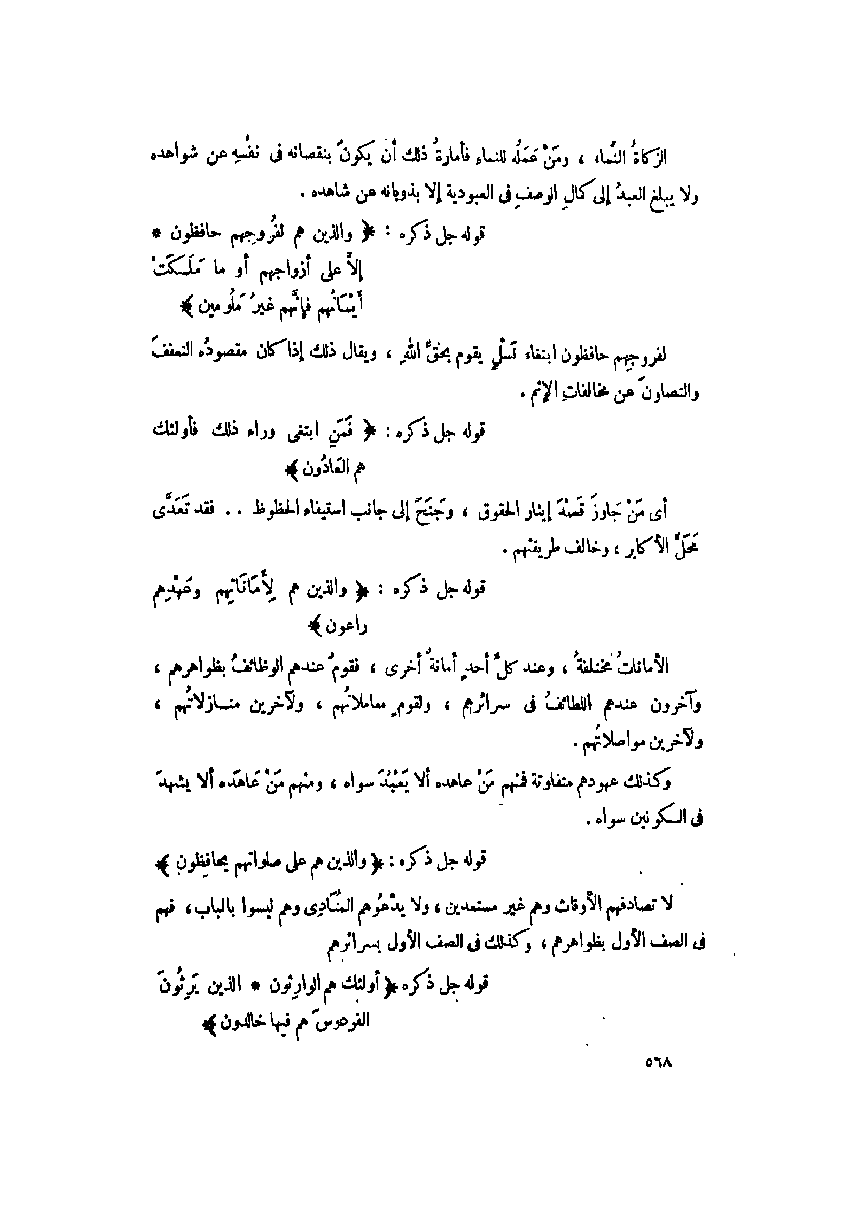 لفروجهم حافظون ابتغاء نسل يقوم بحقّ الله، ويقال ذلك إذا كان مقصوده التعفف والتصاون عن مخالفات الإثم.