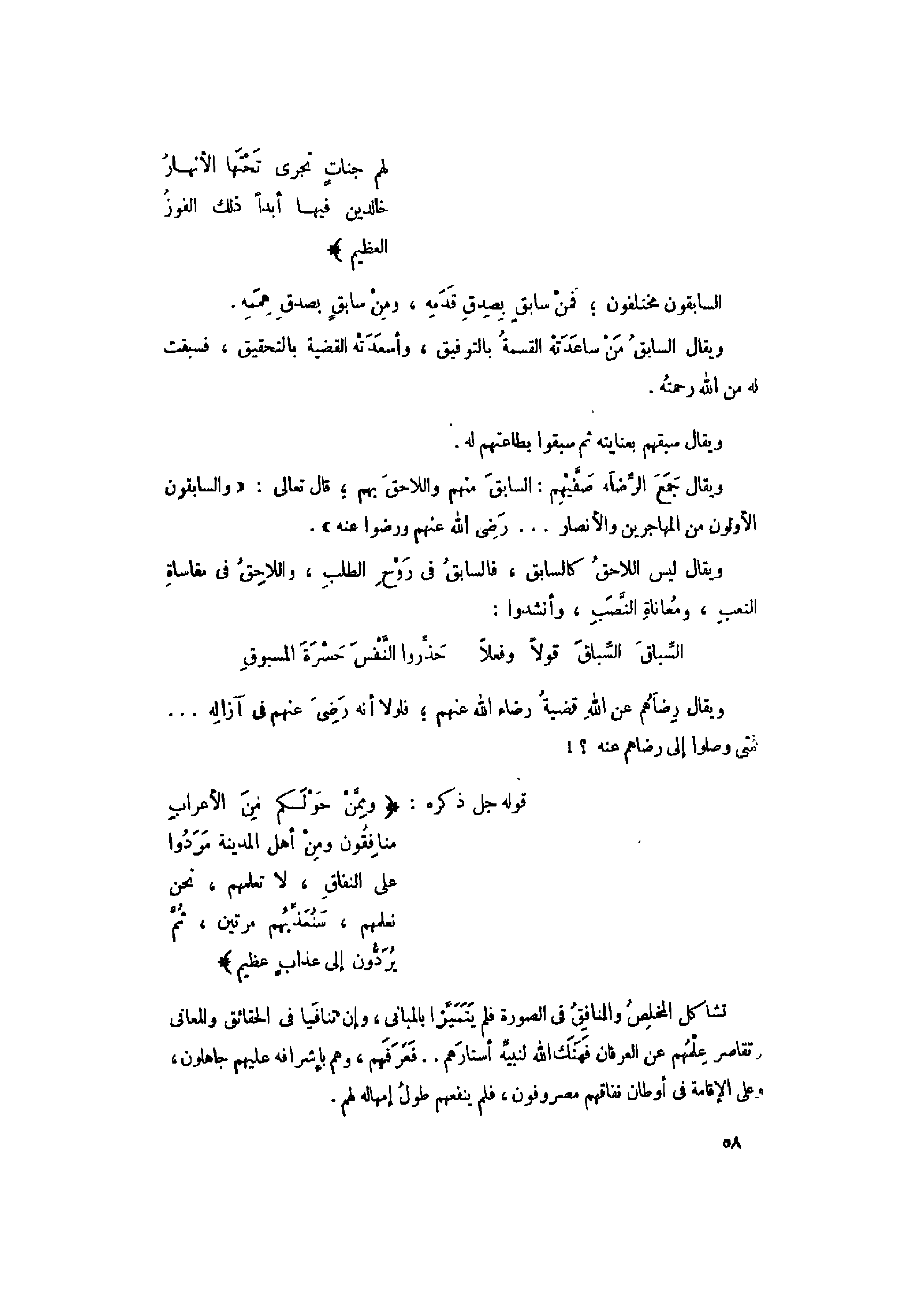 تشاكل المخلص والمنافق فى الصورة فلم يتميّز بالمباني، وإن تنافيا فى الحقائق والمعاني وتقاصر علمهم عن العرفان فهتك الله لنبيّه أستارهم.. فعرفهم، وهم بإشرافه عليهم جاهلون، وعلى الإقامة فى أوطان نفاقهم مصروفون، فلم ينفعهم طول إمهاله لهم.
