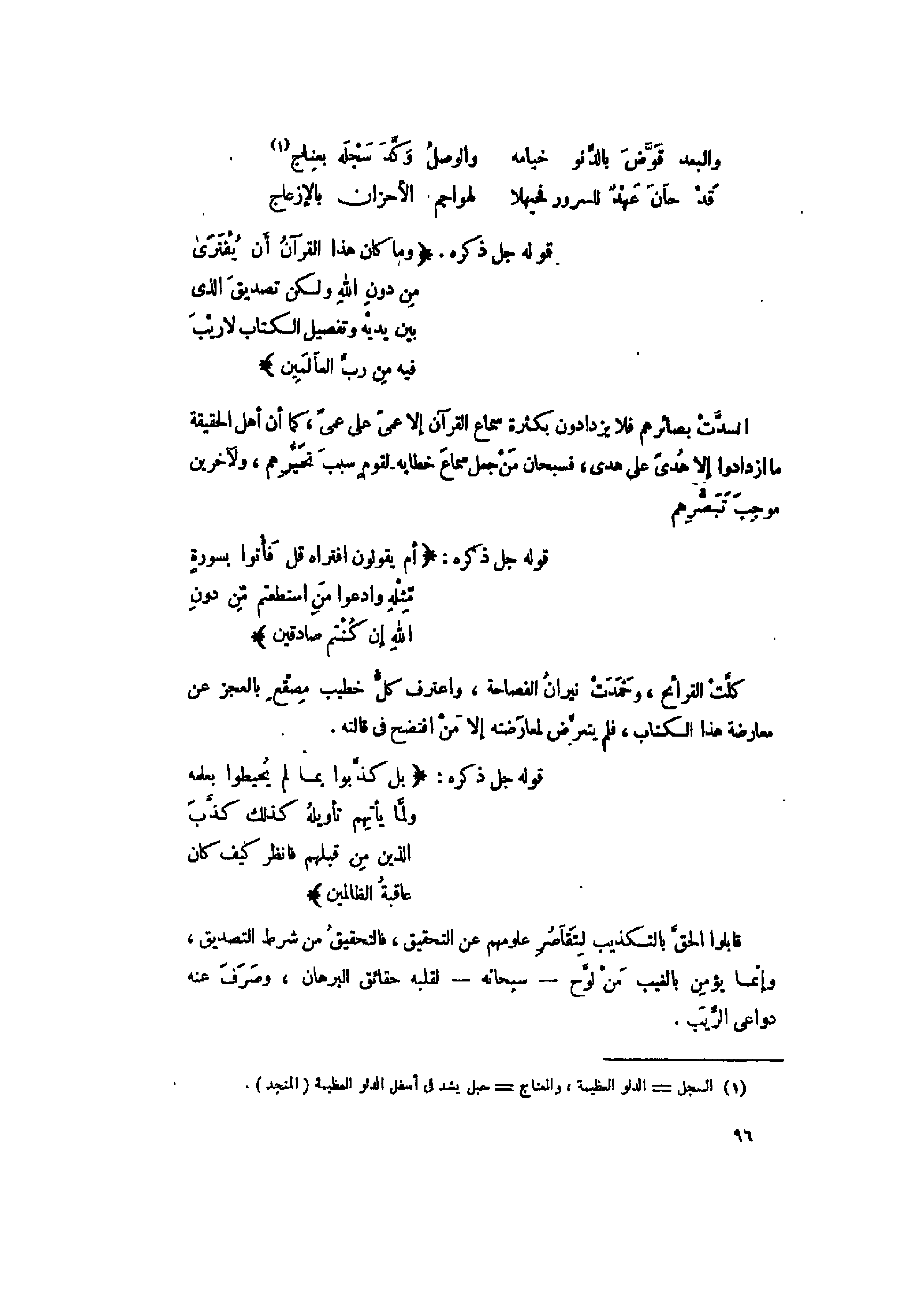 كلّت القرائح، وخمدت نيران الفصاحة، واعترف كلّ خطيب مصقع بالعجز عن معارضة هذا الكتاب، فلم يتعرّض لمعارضته إلا من افتضح فى قالته.