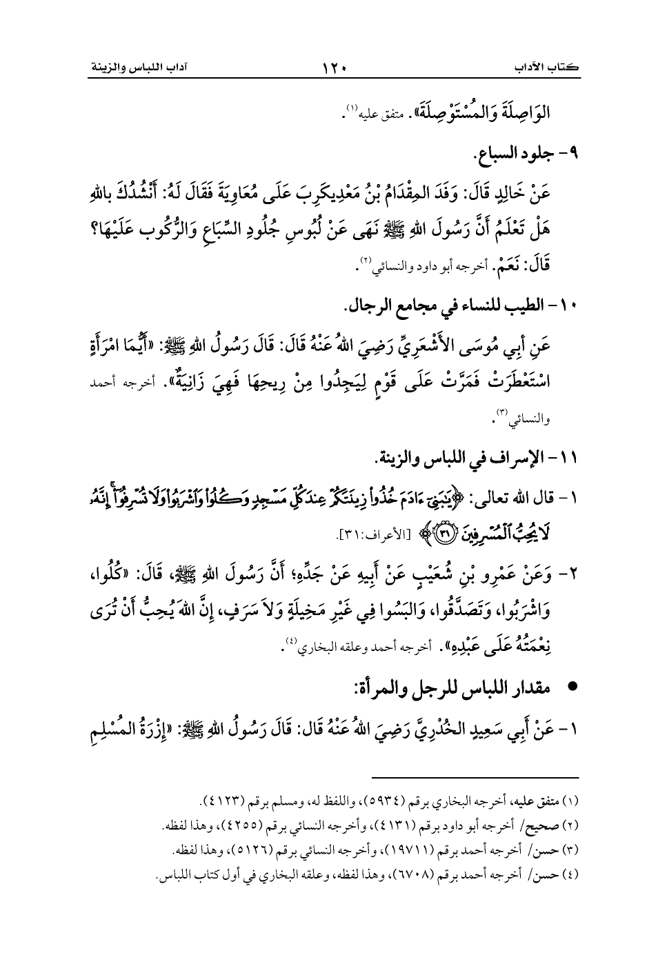 1 - عَنْ أَبِي سَعِيدٍ الخُدْرِيَّ رَضِيَ اللهُ عَنْهُ قَال: قَالَ رَسُولُ اللهِ - صلى الله عليه وسلم -: «إِزْرَةُ المُسْلِمِ