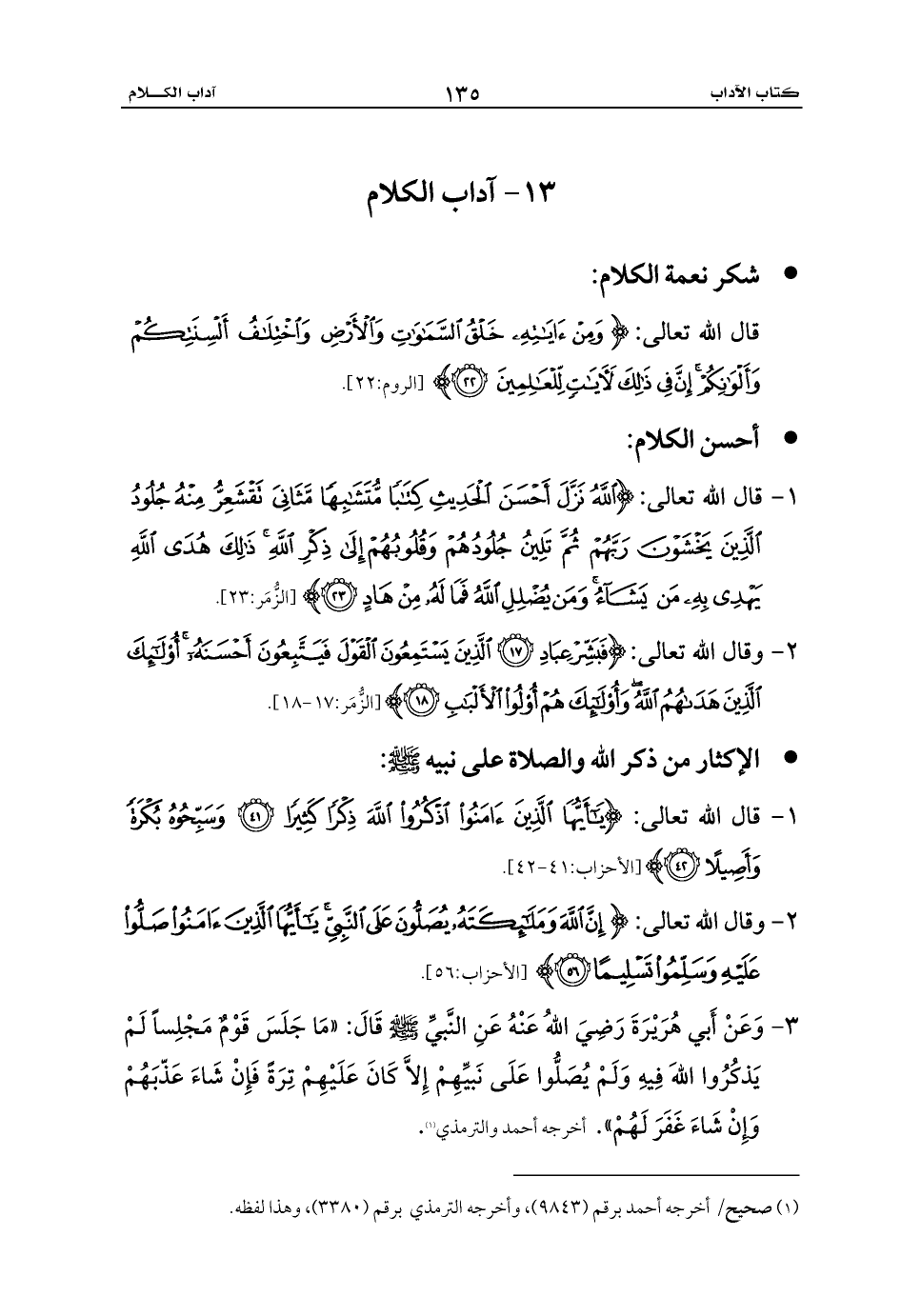 3 - وَعَنْ أَبي هُرَيْرَةَ رَضِيَ اللهُ عَنْهُ عَنِ النَّبيِّ - صلى الله عليه وسلم - قَالَ: «مَا جَلَسَ قَوْمٌ مَجْلِساً لَمْ يَذكُرُوا اللهَ فِيهِ وَلَمْ يُصَلُّوا عَلَى نَبيِّهِمْ إِلاَّ كَانَ عَلَيْهِمْ تِرَةً فَإِنْ شَاءَ عَذّبَهُمْ وَإِنْ شَاءَ غَفَرَ لَهُمْ». أخرجه أحمد والترمذي (¬1).