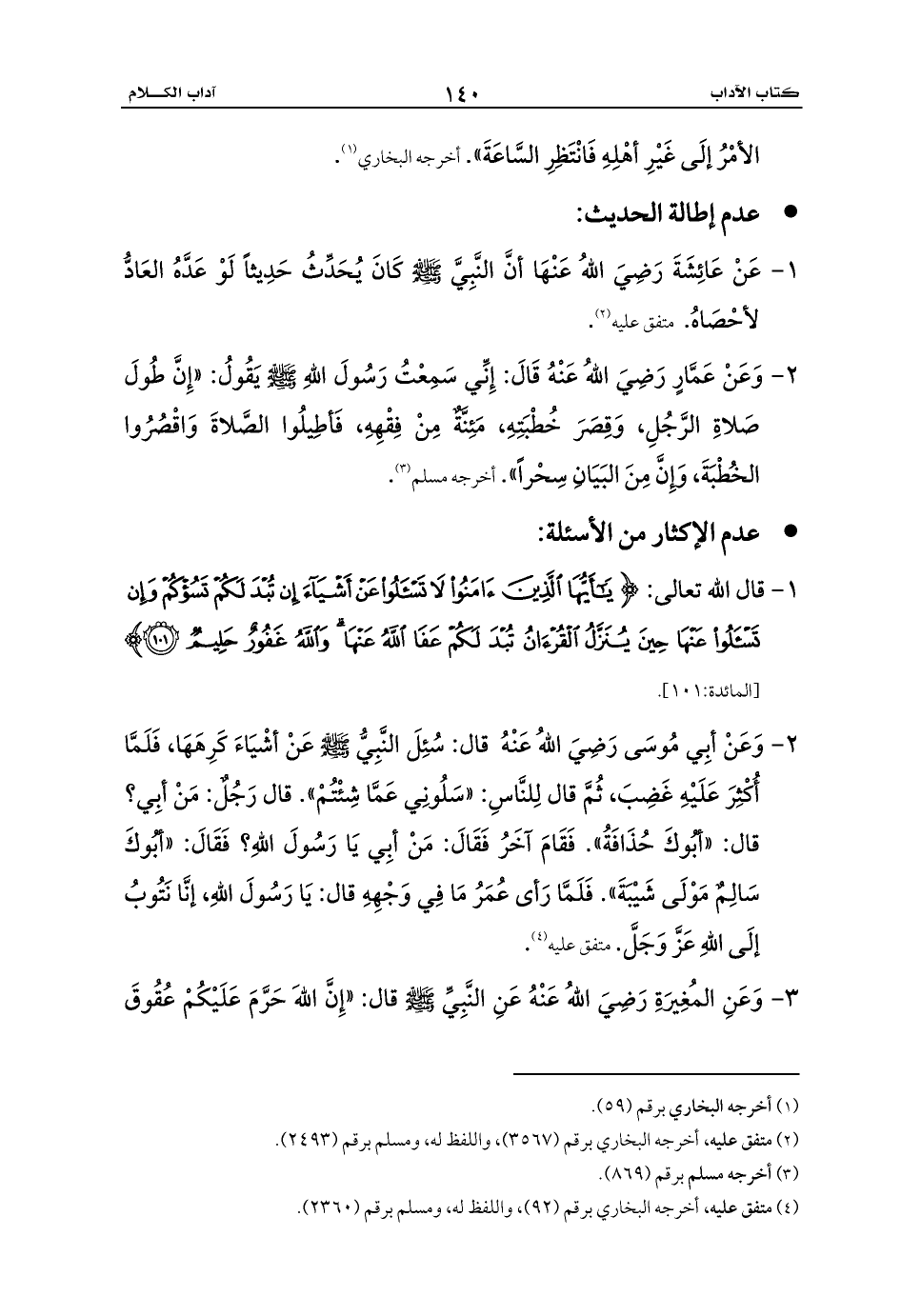 (¬4) متفق عليه، أخرجه البخاري برقم (92) , واللفظ له، ومسلم برقم (2360).