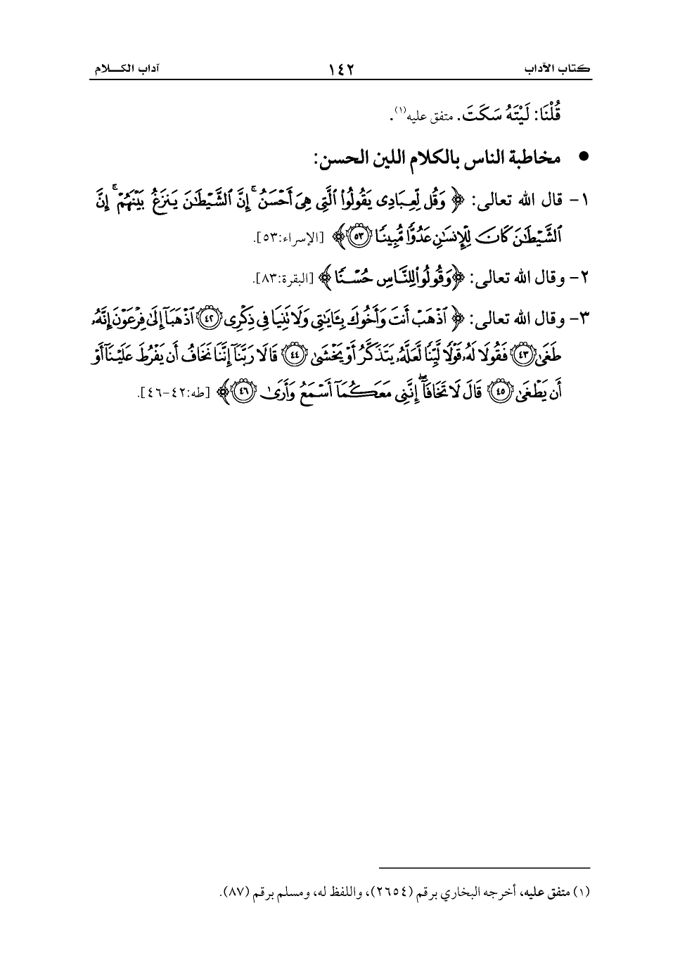 2 - وقال الله تعالى: {وَقُولُوا لِلنَّاسِ حُسْنًا} [البقرة:83].