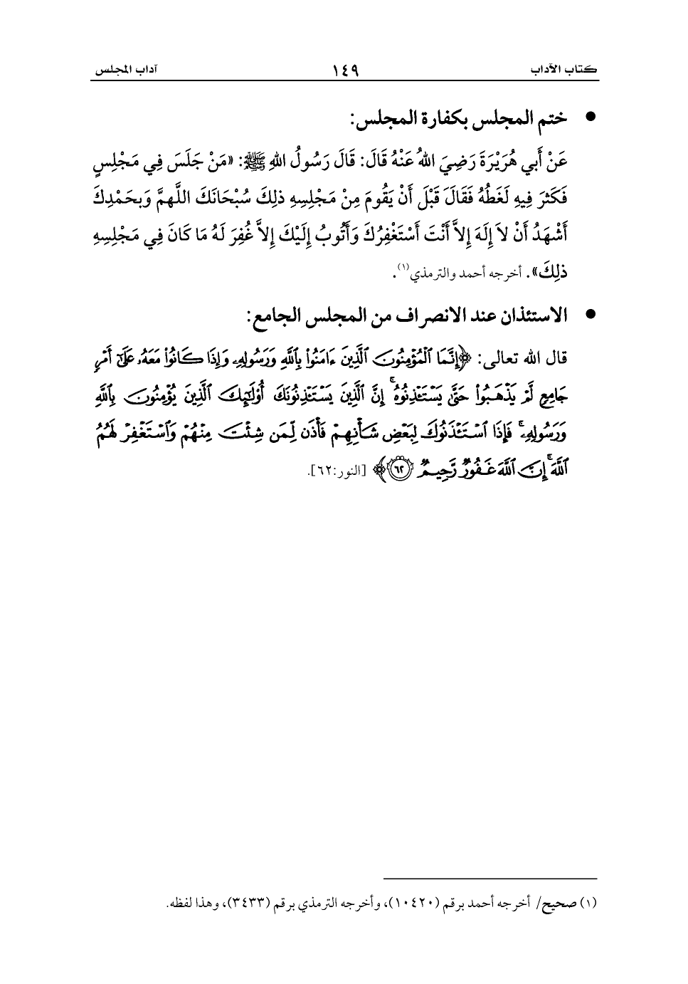 - الاستئذان عند الانصراف من المجلس الجامع: