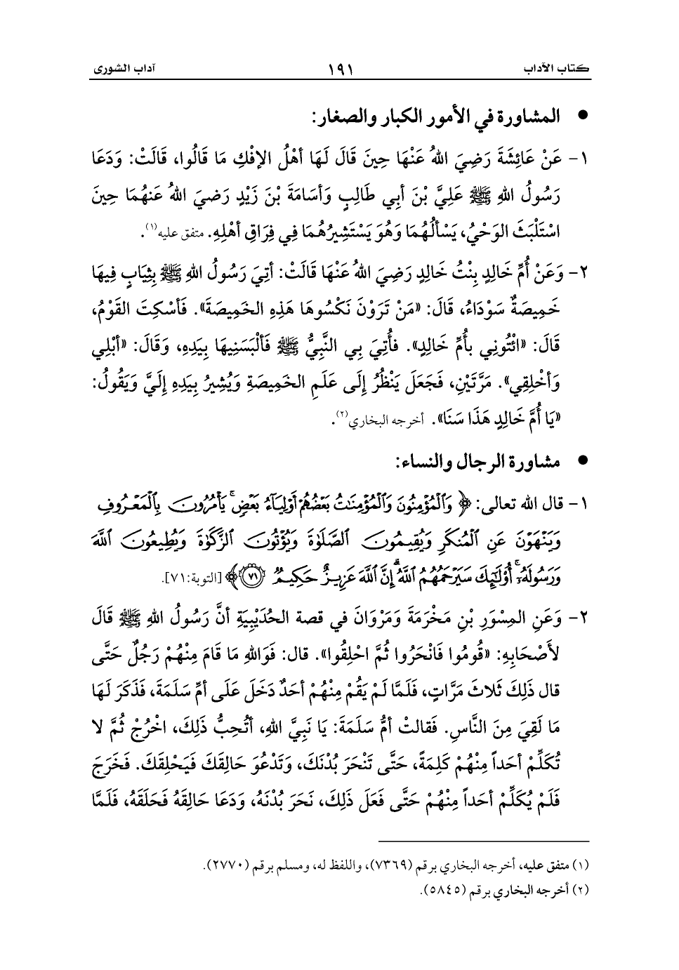 - المشاورة في الأمور الكبار والصغار: