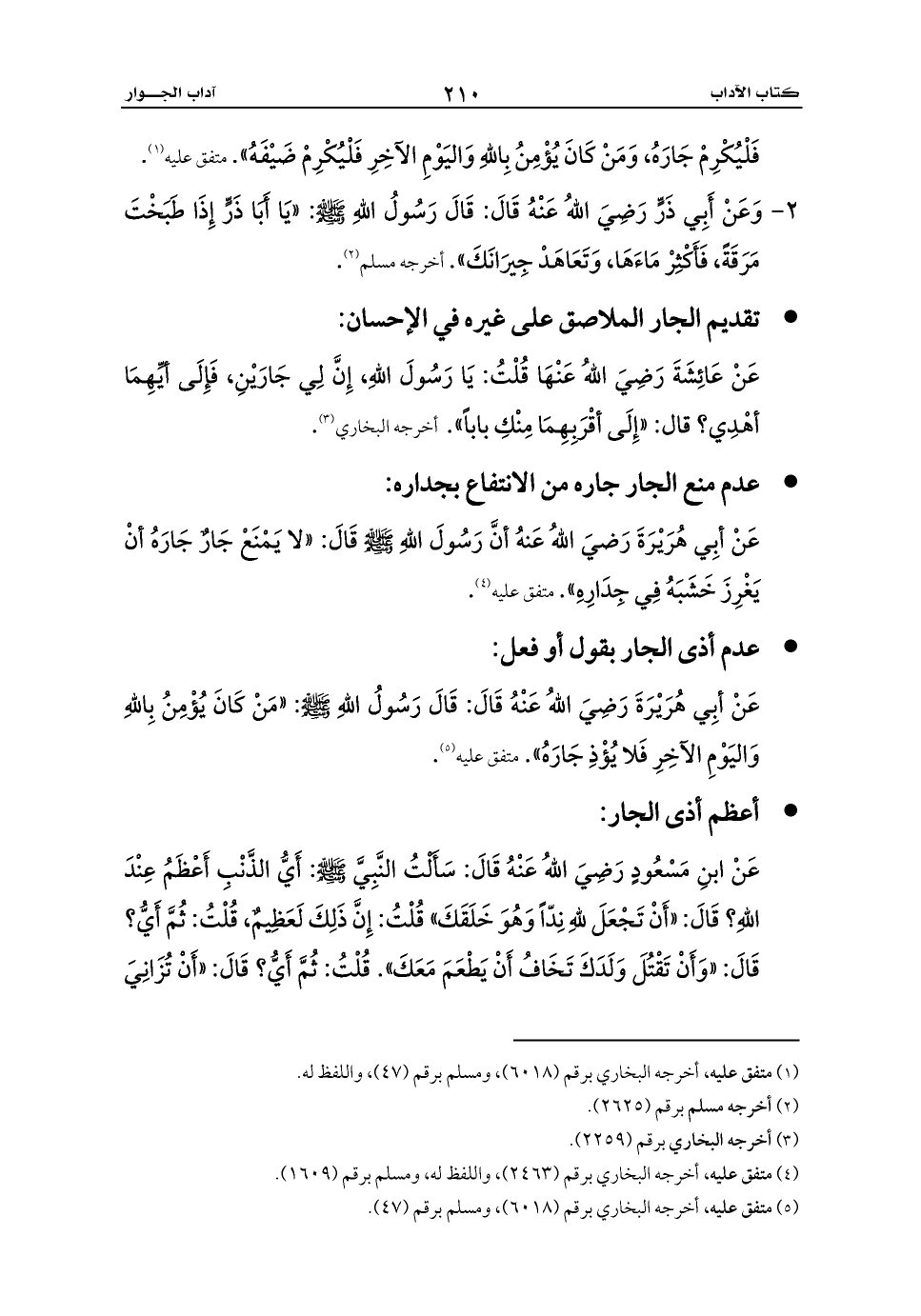 - تقديم الجار الملاصق على غيره في الإحسان: