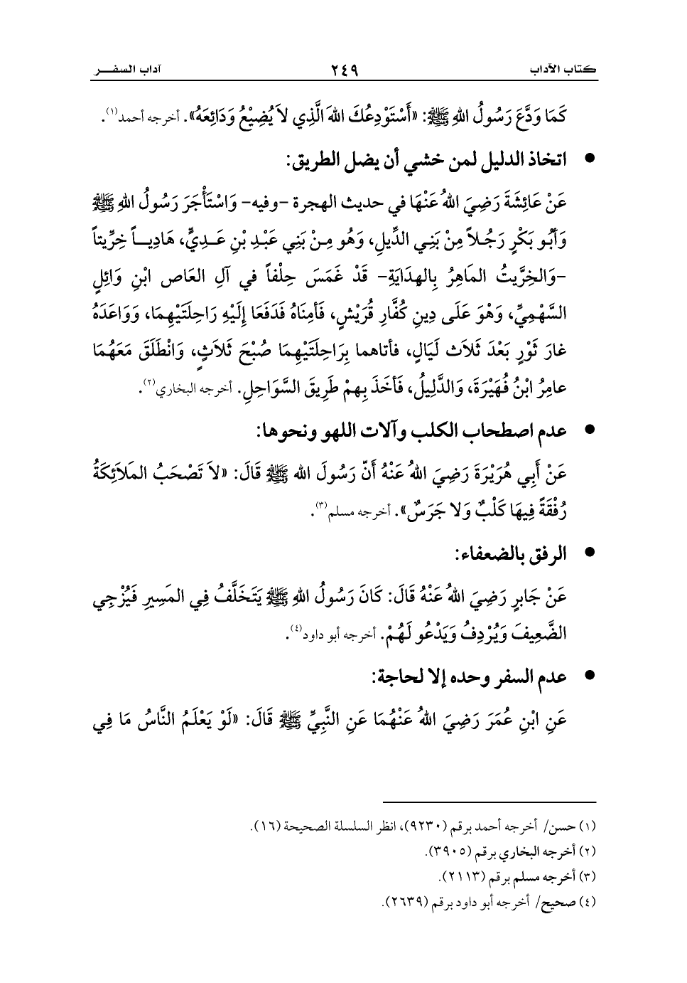 - عدم اصطحاب الكلب وآلات اللهو ونحوها: