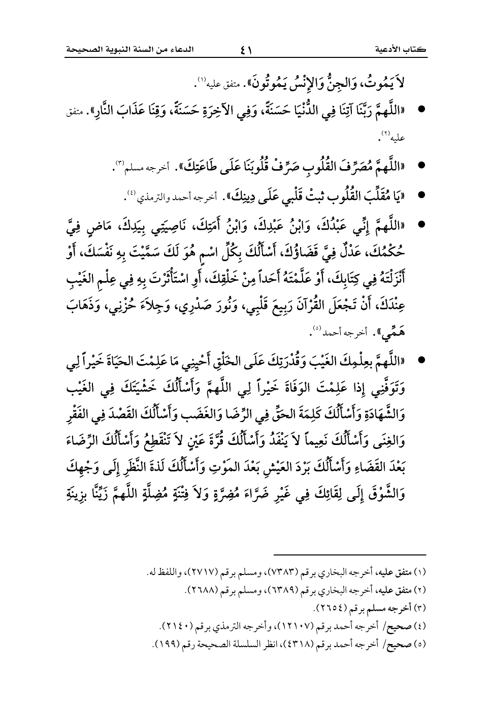- «يَا مُقَلِّبَ القُلُوب ثبتْ قَلْبي عَلَى دِينِكَ». أخرجه أحمد والترمذي (¬4).