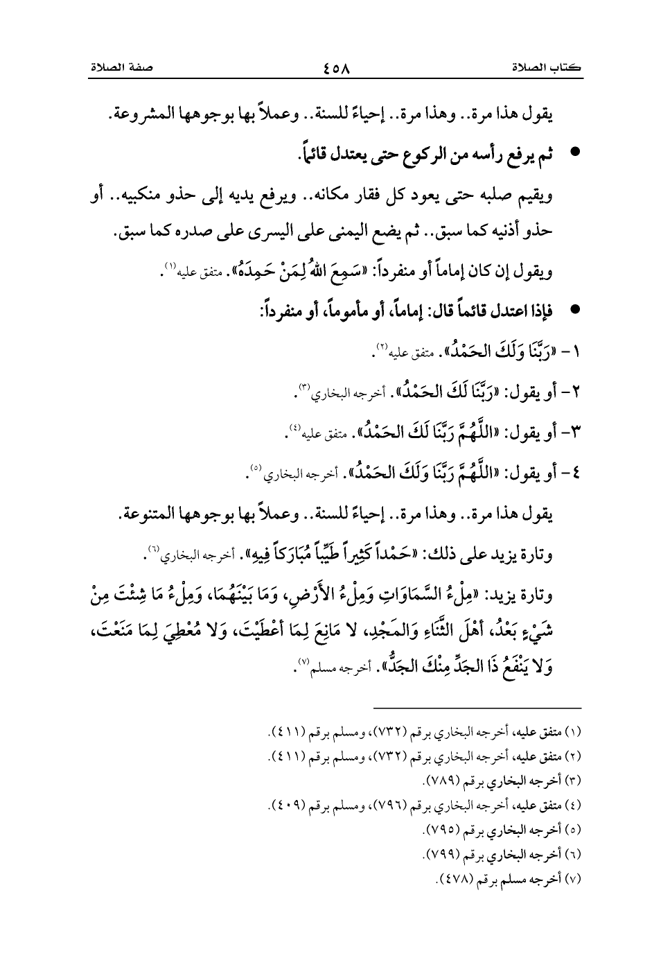 1 - «رَبَّنَا وَلَكَ الحَمْدُ». متفق عليه (¬2).