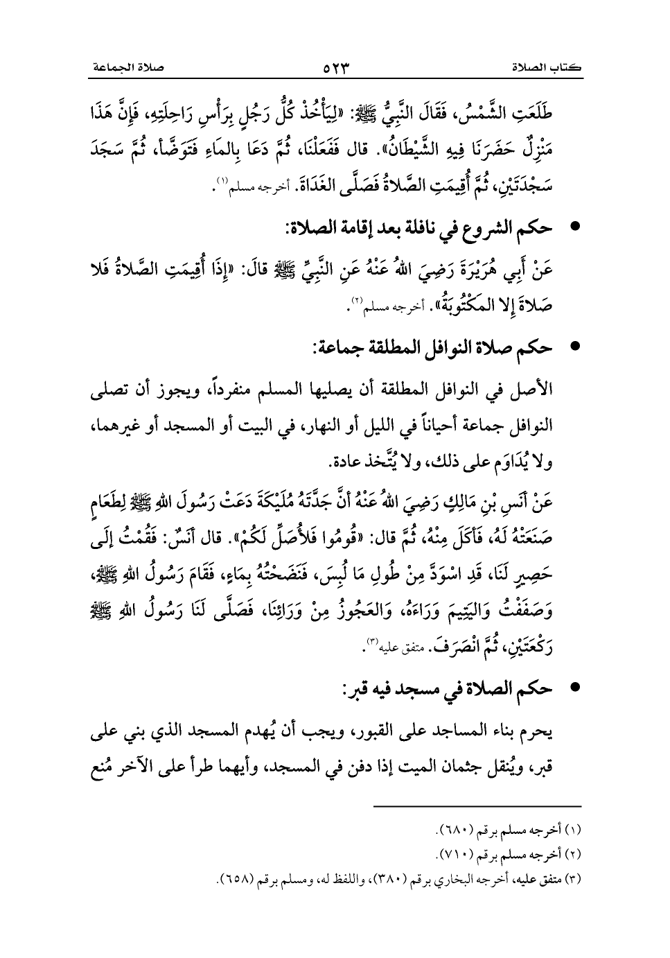 (¬3) متفق عليه، أخرجه البخاري برقم (380) , واللفظ له، ومسلم برقم (658).