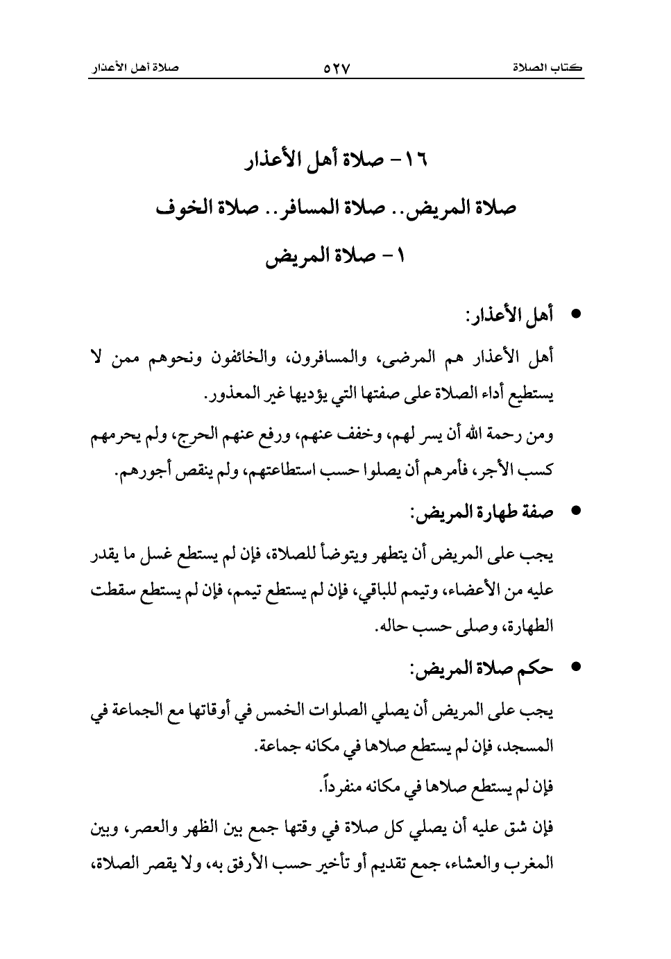 صلاة المريض .. صلاة المسافر .. صلاة الخوف