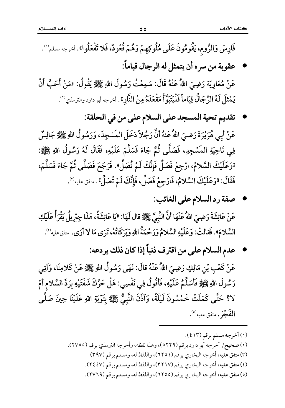 فَارِسَ وَالرُّومِ، يَقُومُونَ عَلَى مُلُوكِهِمْ وَهُمْ قُعُودٌ، فَلا تَفْعَلُوا». أخرجه مسلم (¬1).
