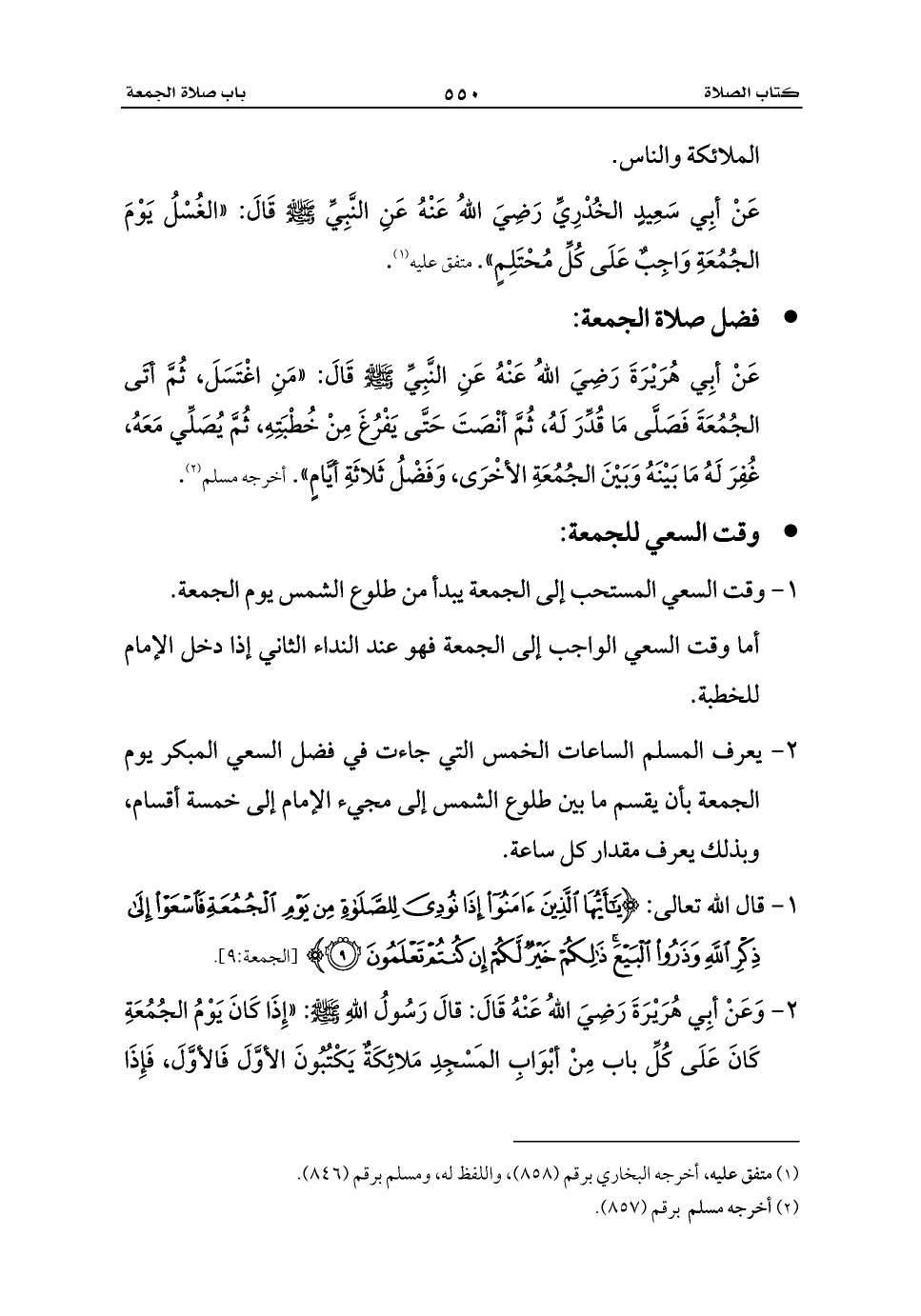1 - وقت السعي المستحب إلى الجمعة يبدأ من طلوع الشمس يوم الجمعة.
