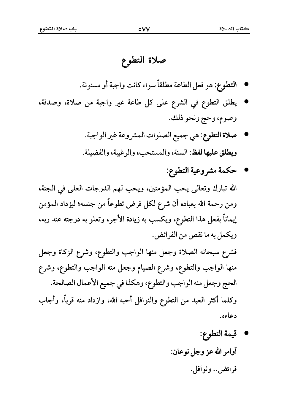 · صلاة التطوع: هي جميع الصلوات المشروعة غير الواجبة.