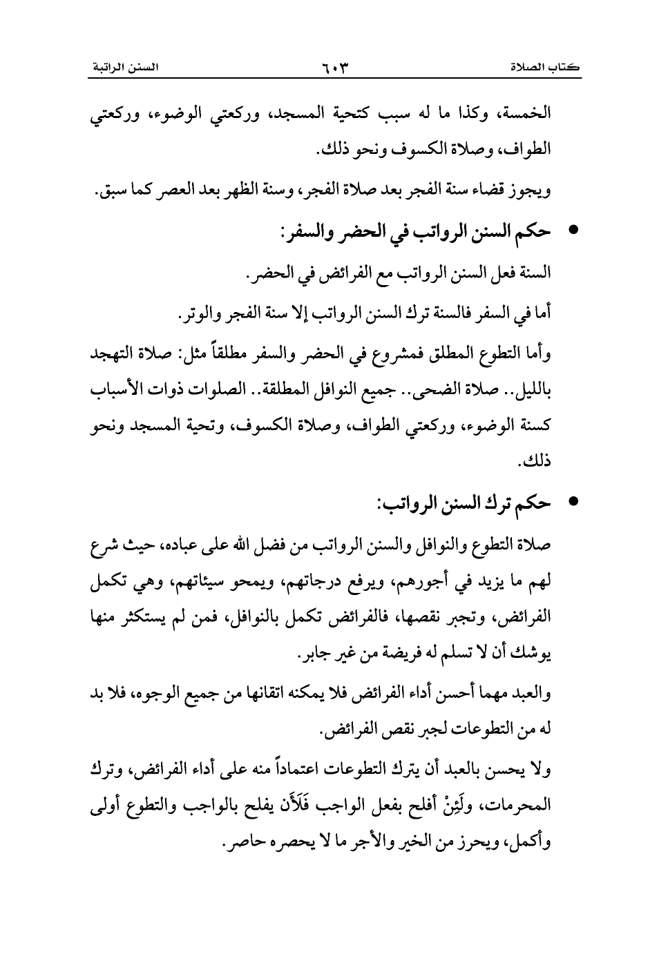 - حكم السنن الرواتب في الحضر والسفر: