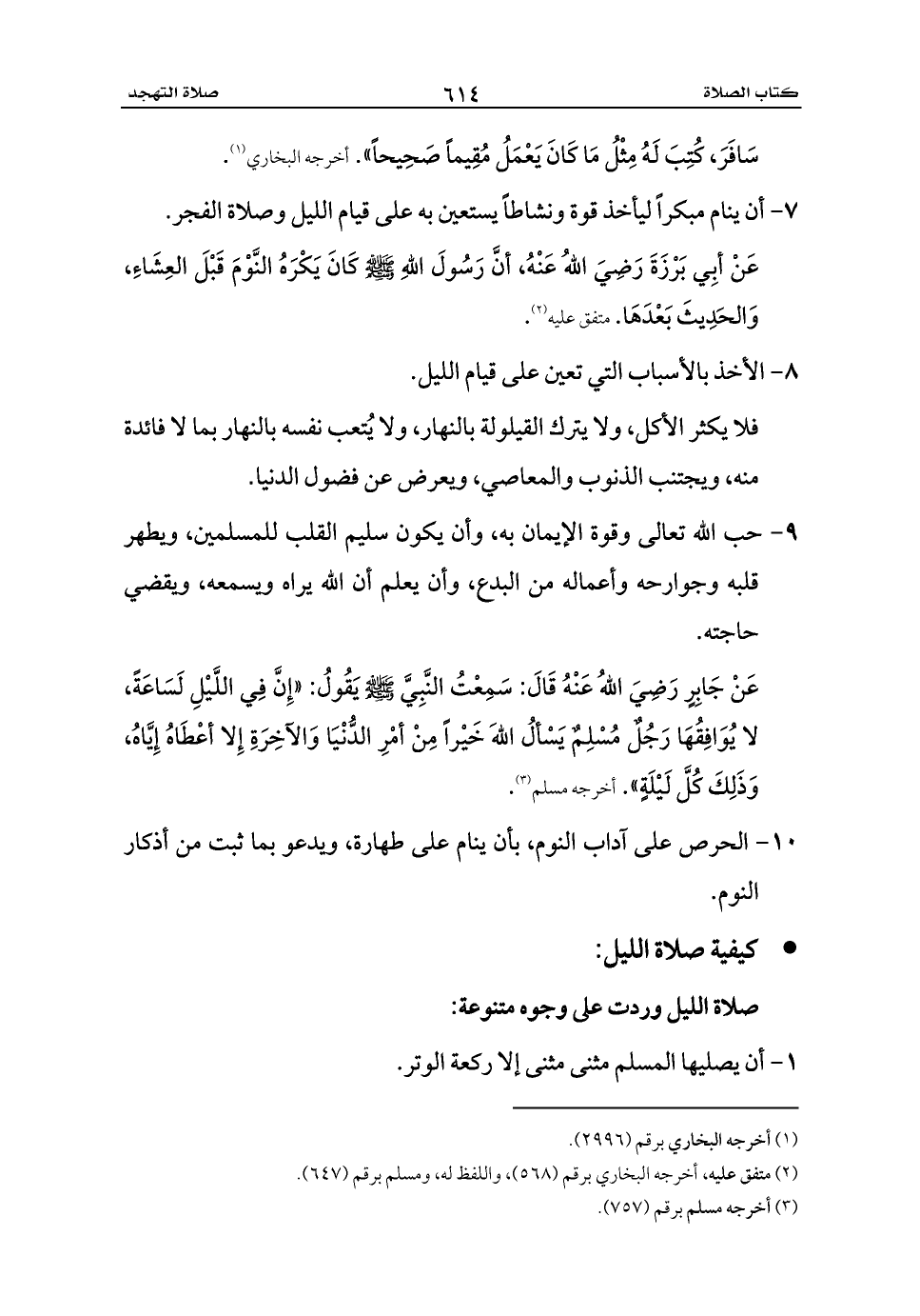 7 - أن ينام مبكراً ليأخذ قوة ونشاطاً يستعين به على قيام الليل وصلاة الفجر.
