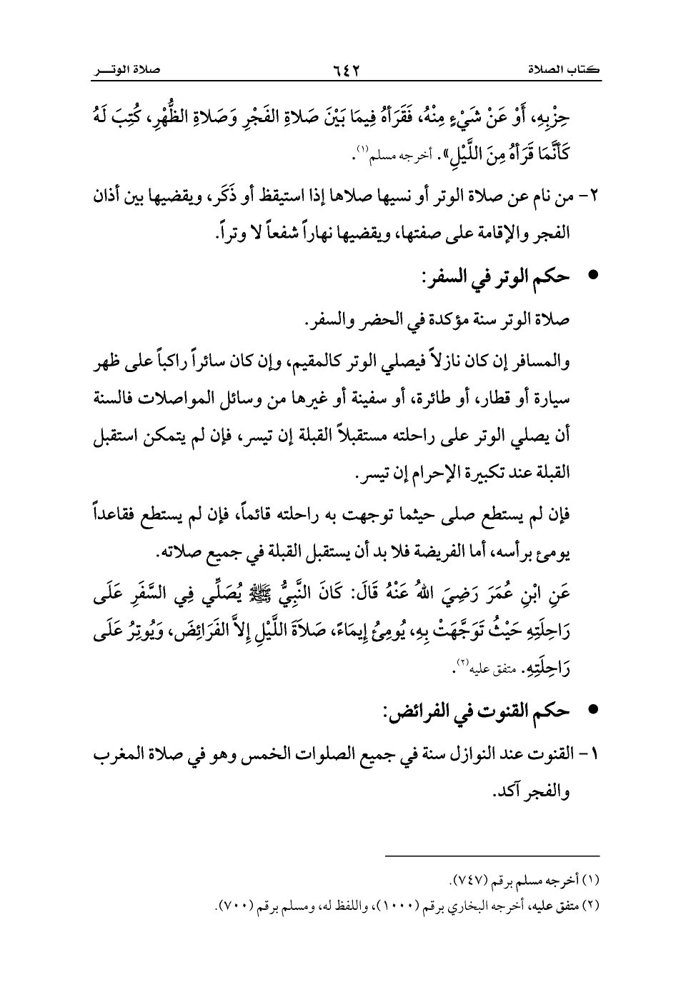 1 - القنوت عند النوازل سنة في جميع الصلوات الخمس وهو في صلاة المغرب