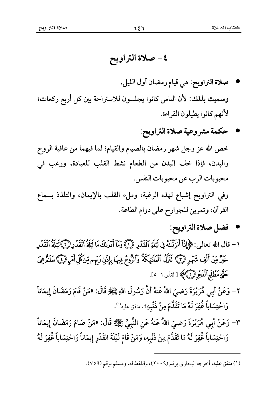 - صلاة التراويح: هي قيام رمضان أول الليل.