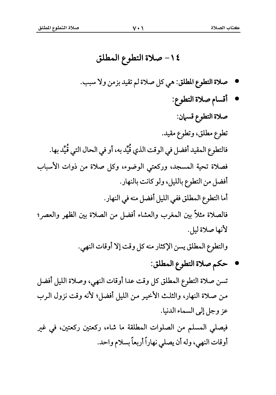 - صلاة التطوع المطلق: هي كل صلاة لم تقيد بزمن ولا سبب.