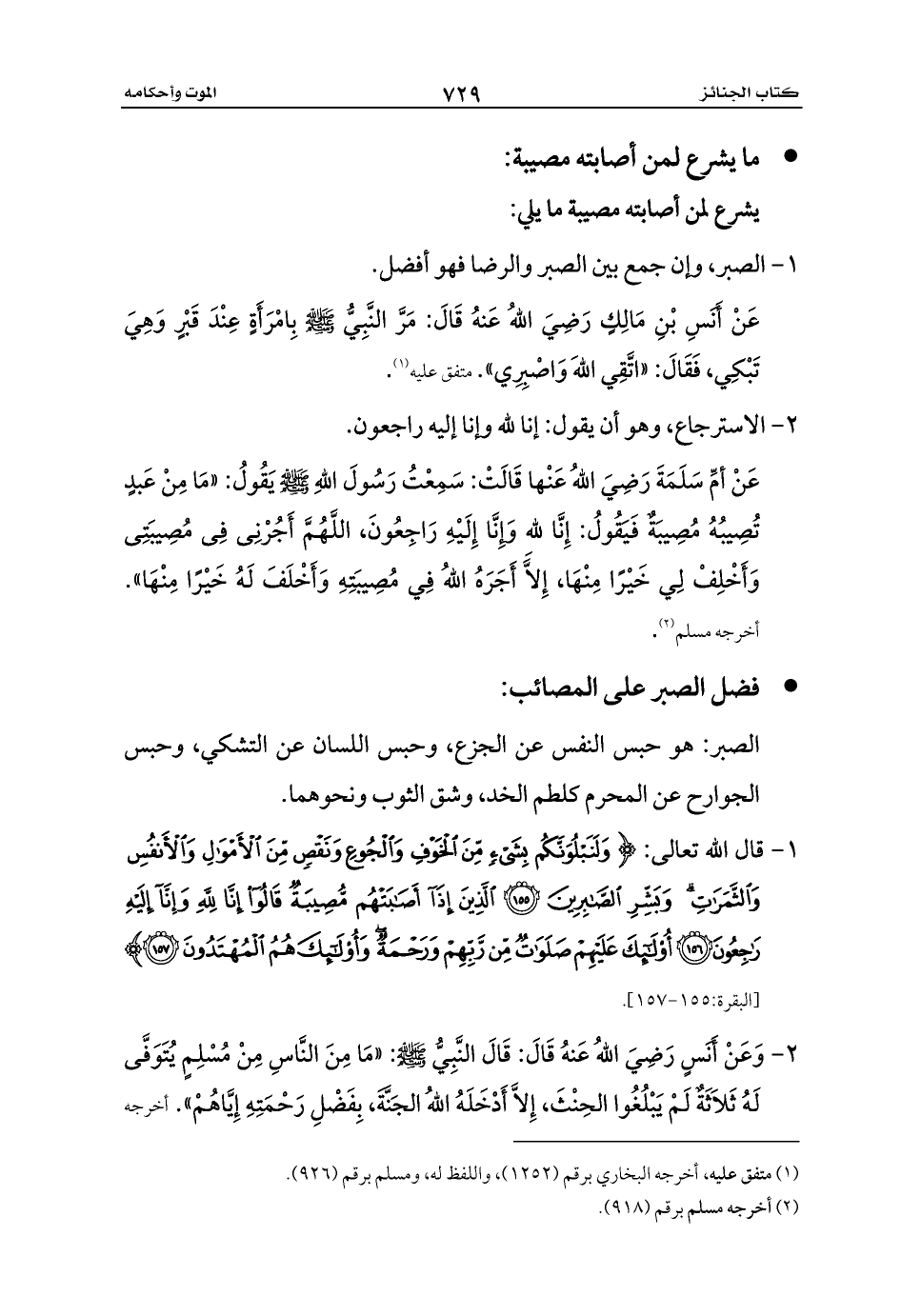 - فضل الصبر على المصائب: