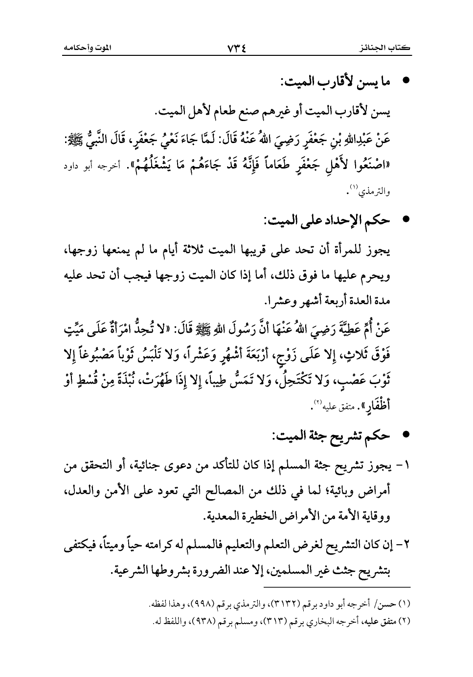 عَنْ عَبْدِاللهِ بْنِ جَعْفَرٍ رَضِيَ اللهُ عَنْهُ قَالَ: لَمَّا جَاءَ نَعْيُ جَعْفَرٍ، قَالَ النَّبيُّ - صلى الله عليه وسلم -: «اصْنَعُوا لأَهْلِ جَعْفَرٍ طَعَاماً فَإِنَّهُ قَدْ جَاءَهُمْ مَا يَشْغَلُهُمْ». أخرجه أبو داود والترمذي (¬1).