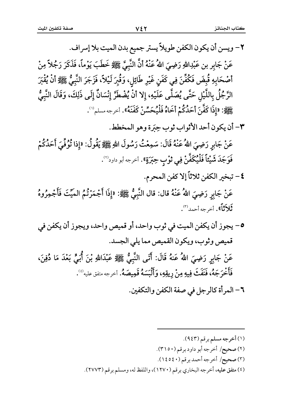 6 - المرأة كالرجل في صفة الكفن والتكفين.