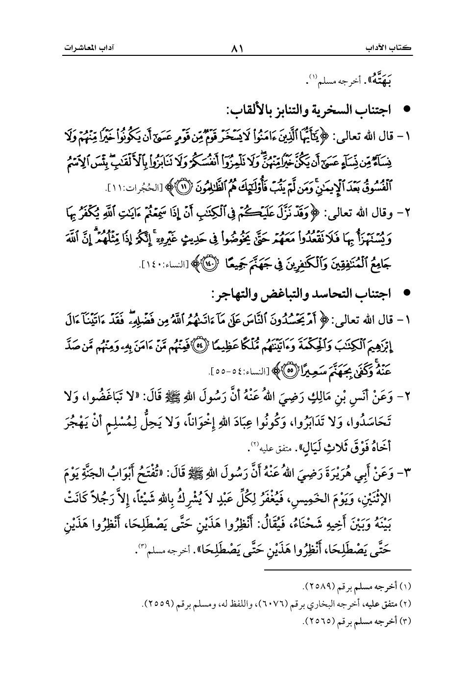 - اجتناب التحاسد والتباغض والتهاجر: