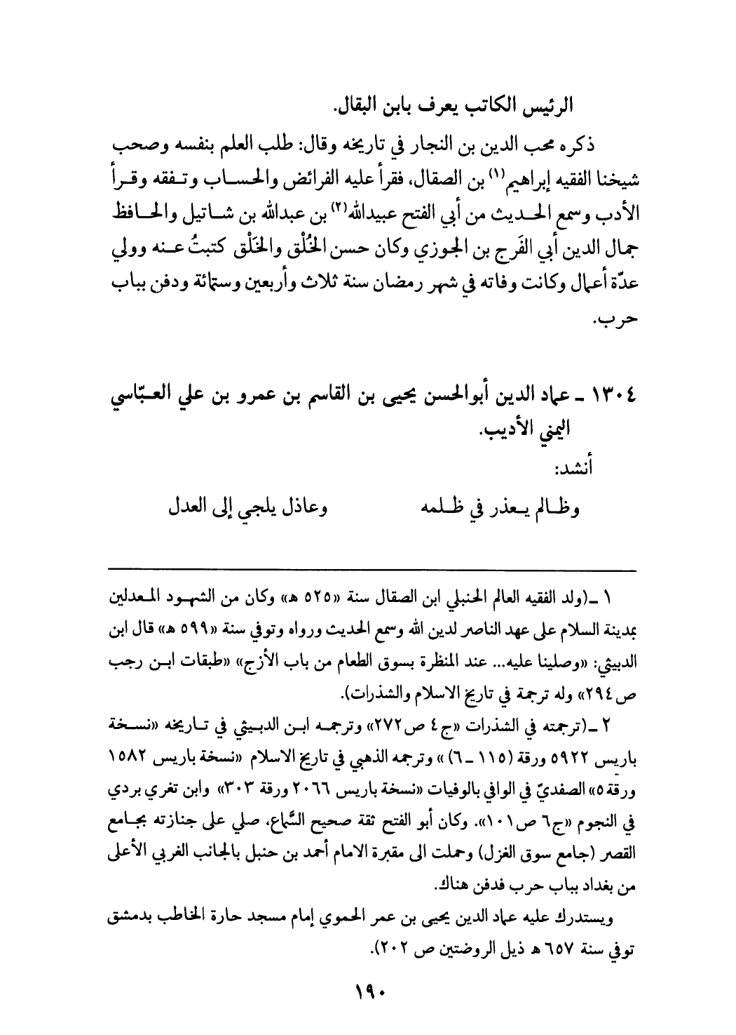 (¬1) (ولد الفقيه العالم الحنبلي ابن الصقال سنة «525 هـ» وكان من الشهود المعدلين بمدينة السلام على عهد الناصر لدين الله وسمع الحديث ورواه وتوفي سنة «599 هـ» قال ابن الدبيثي: «وصلينا عليه ... عند المنظرة بسوق الطعام من باب الأزج» «طبقات ابن رجب ص 294» وله ترجمة في تاريخ الاسلام والشذرات).