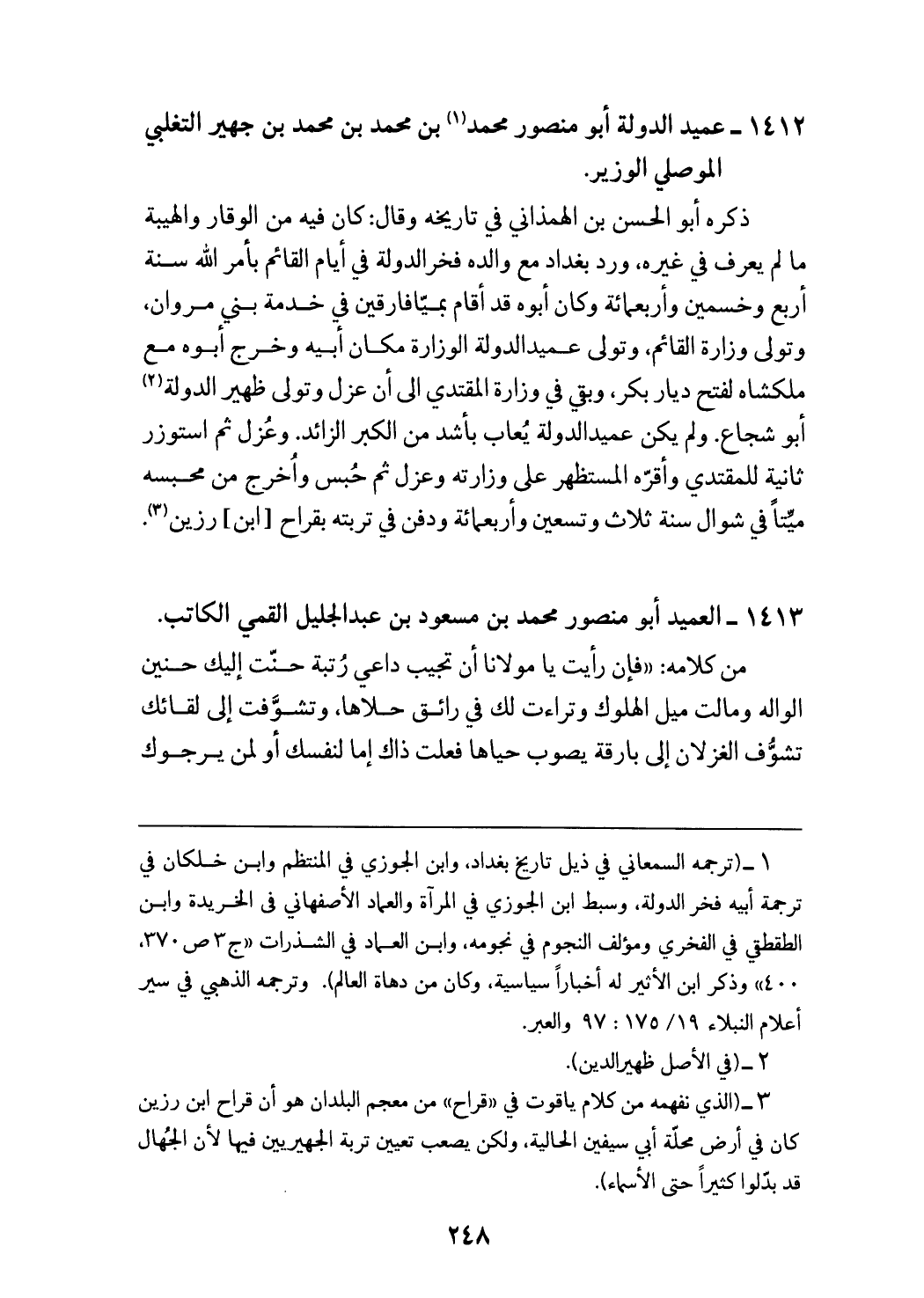 1412 - عميد الدولة أبو منصور محمد (¬1) بن محمد بن محمد بن جهير التغلبي