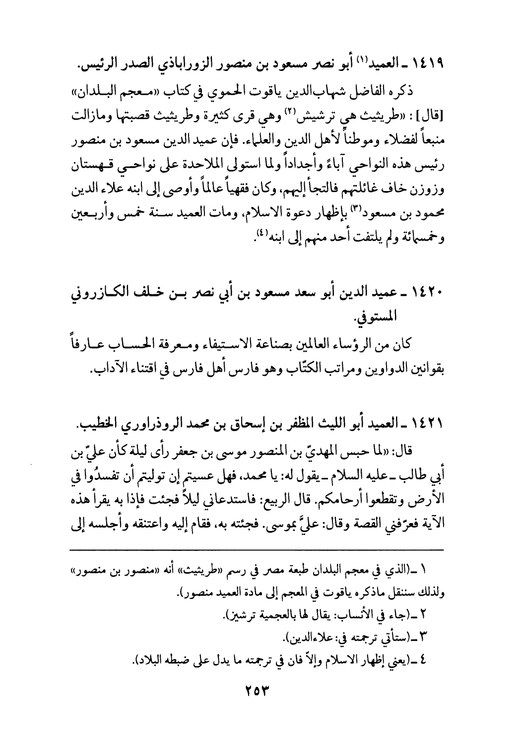 (¬1) (الذي في معجم البلدان طبعة مصر في رسم «طريثيث» أنه «منصور بن منصور» ولذلك سننقل ما ذكره ياقوت في المعجم إلى مادة العميد منصور).