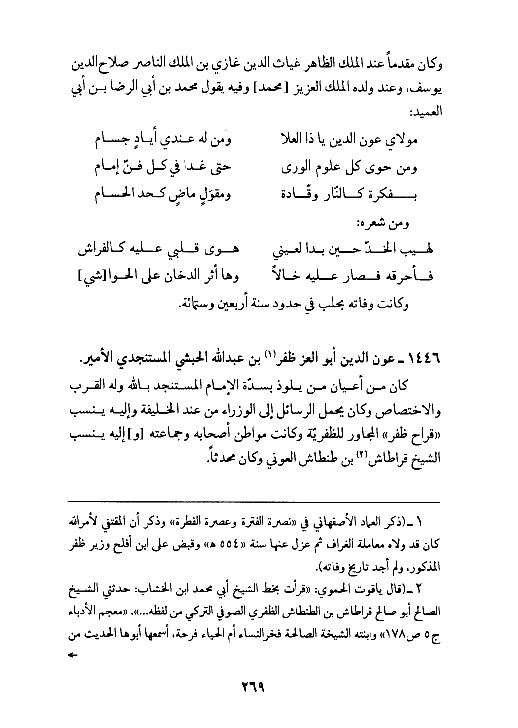 1446 - عون الدين أبو العز ظفر (¬1) بن عبد الله الحبشي المستنجدي الأمير.