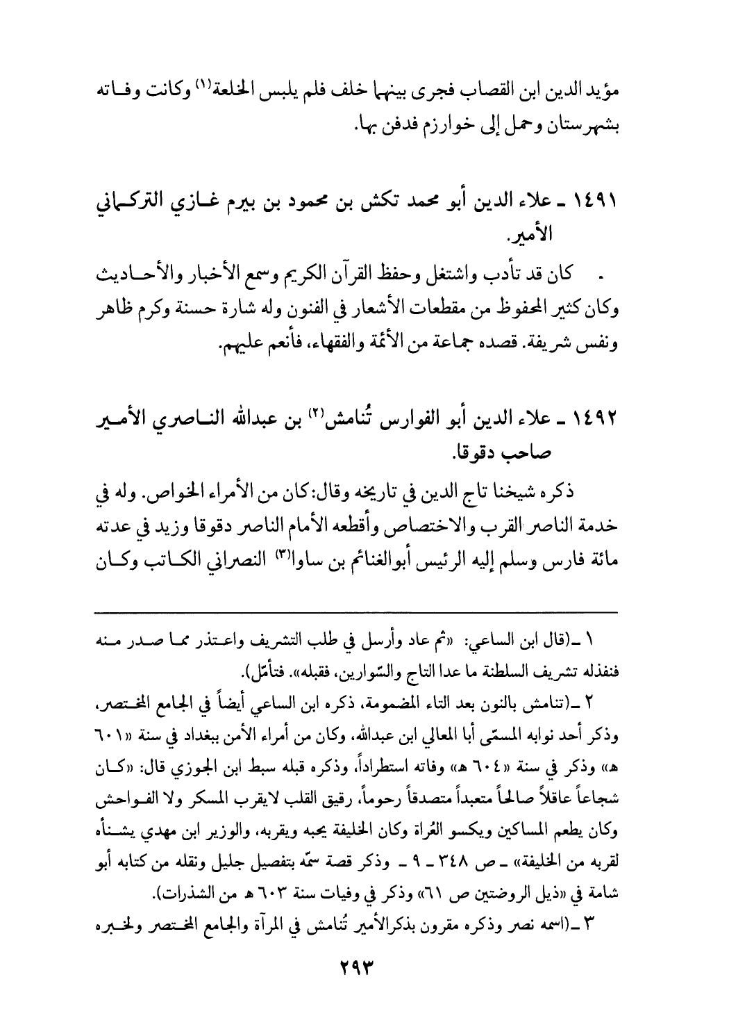 (¬3) (اسمه نصر وذكره مقرون بذكر الأمير تنامش في المرآة والجامع المختصر ولخبره