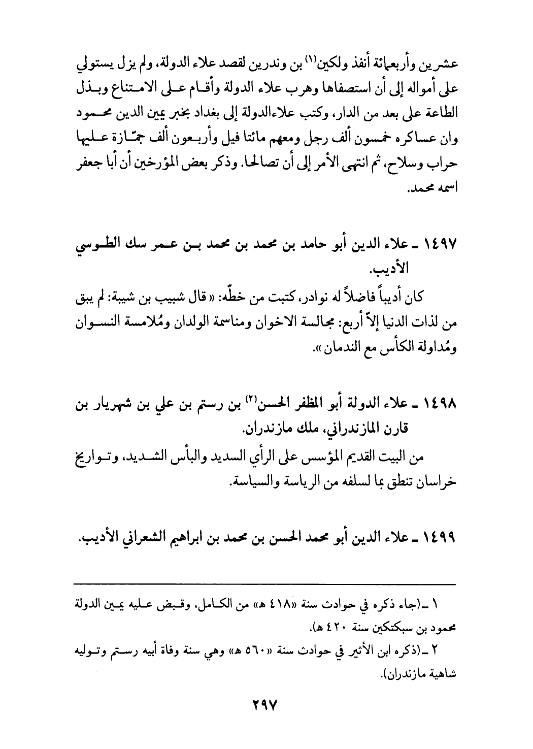 1498 - علاء الدولة أبو المظفر الحسن (¬2) بن رستم بن علي بن شهريار بن
