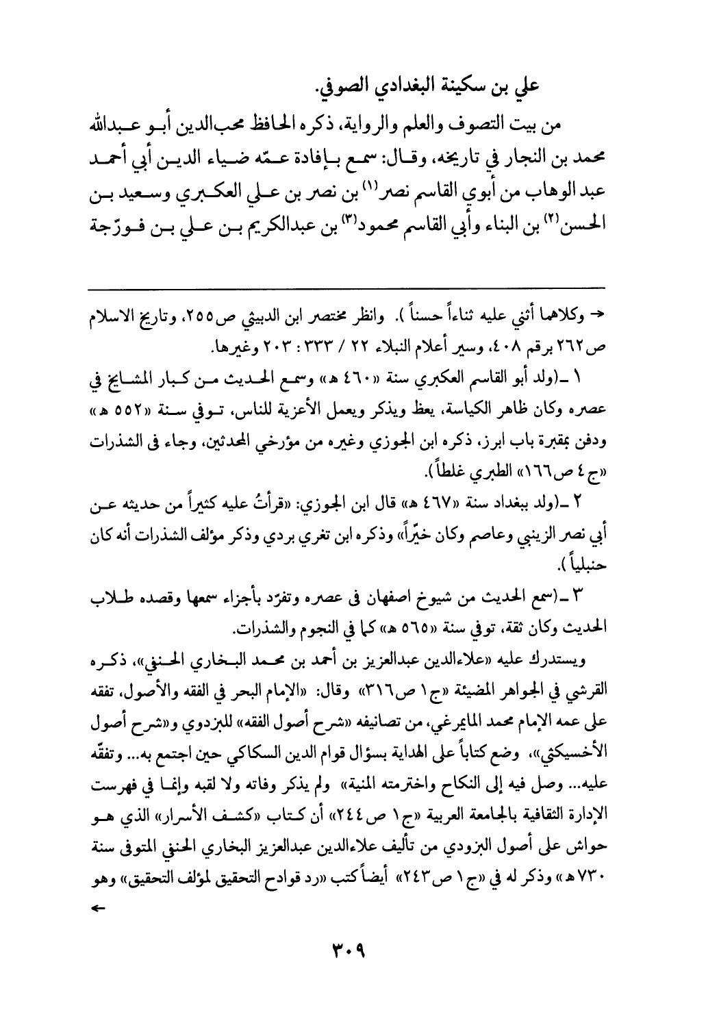 (¬2) (ولد ببغداد سنة «467 هـ» قال ابن الجوزي: «قرأت عليه كثيرا من حديثه عن أبي نصر الزينبي وعاصم وكان خيّرا» وذكره ابن تغري بردي وذكر مؤلف الشذرات أنه كان حنبليا).