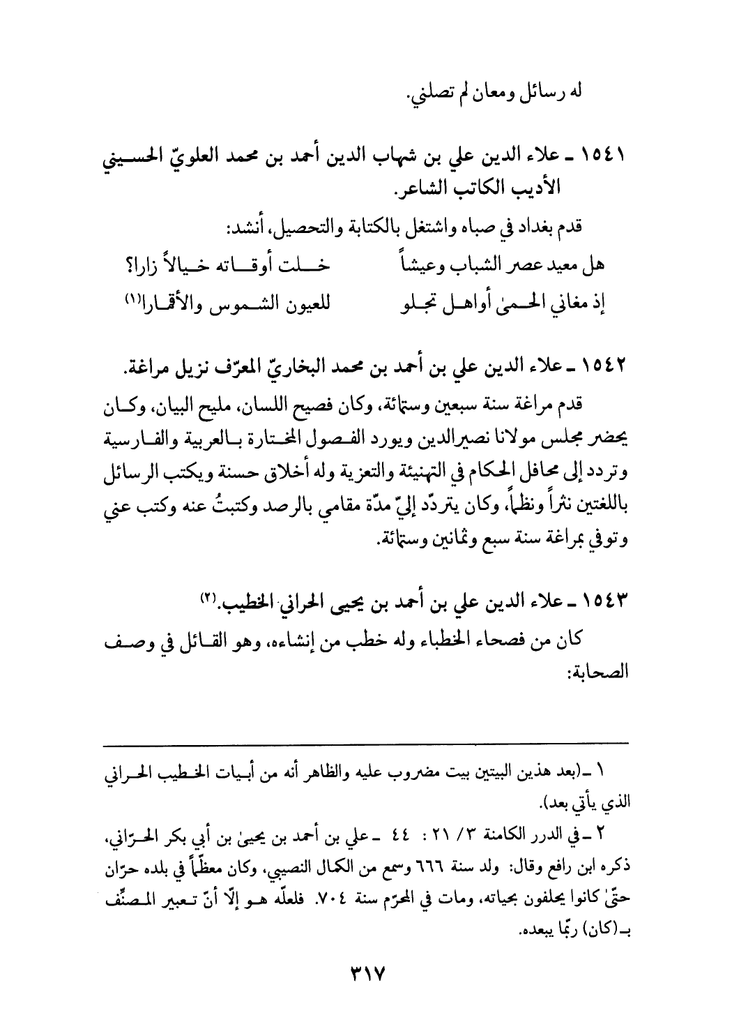 1542 - علاء الدين علي بن أحمد بن محمد البخاريّ المعرّف نزيل مراغة.