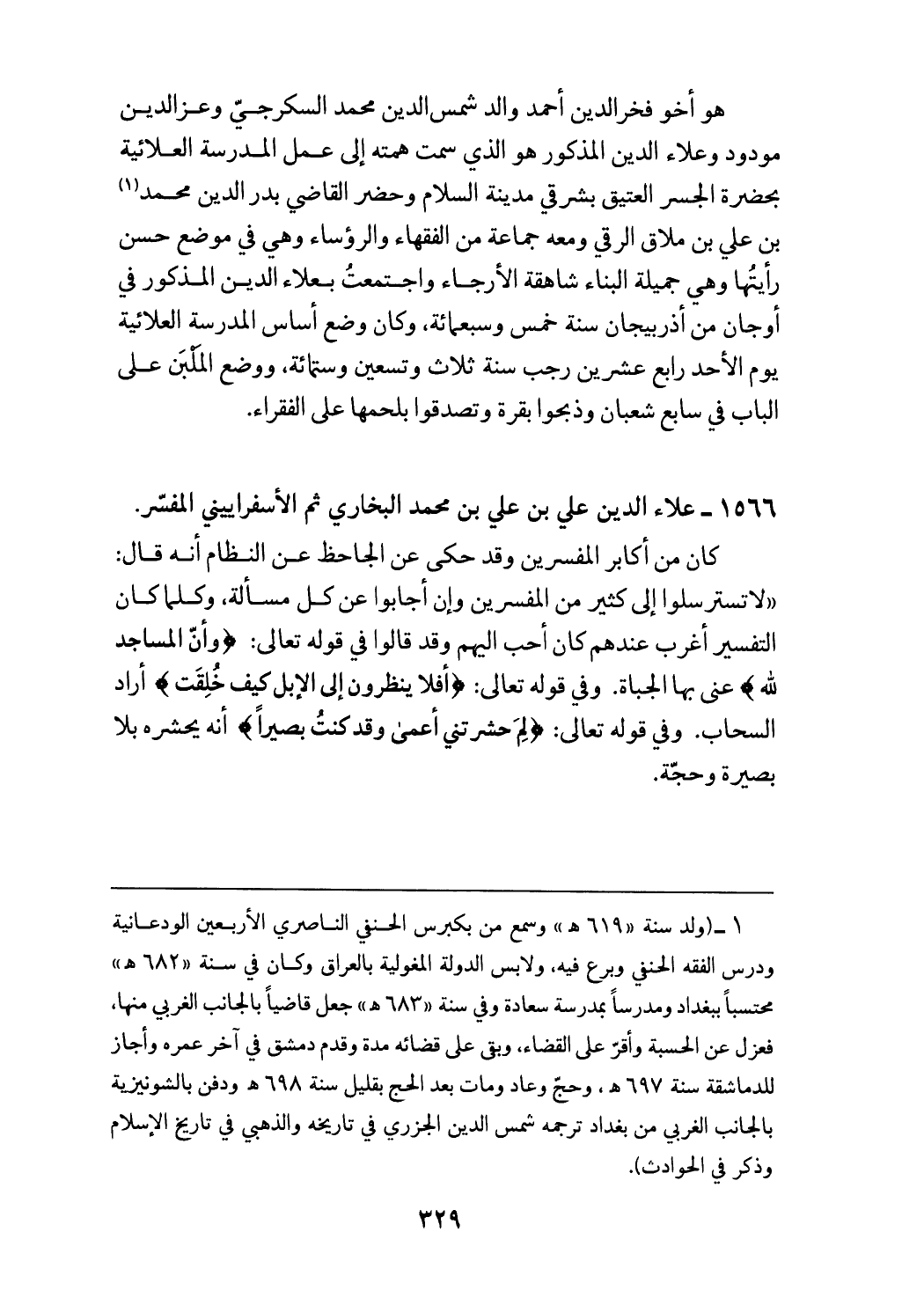 1566 - علاء الدين علي بن علي بن محمد البخاري ثم الأسفراييني المفسّر.
