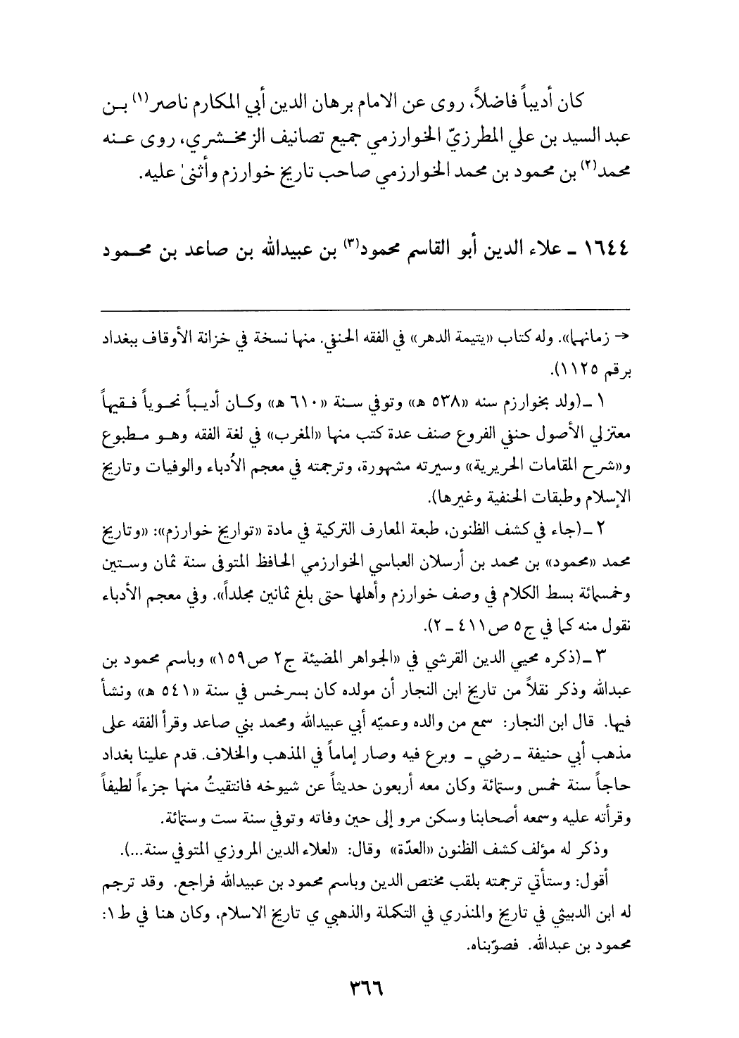 (¬1) (ولد بخوارزم سنه «538 هـ» وتوفي سنة «610 هـ» وكان أديبا نحويا فقيها معتزلي الأصول حنفي الفروع صنف عدة كتب منها «المغرب» في لغة الفقه وهو مطبوع و «شرح المقامات الحريرية» وسيرته مشهورة، وترجمته في معجم الادباء والوفيات وتاريخ الإسلام وطبقات الحنفية وغيرها).